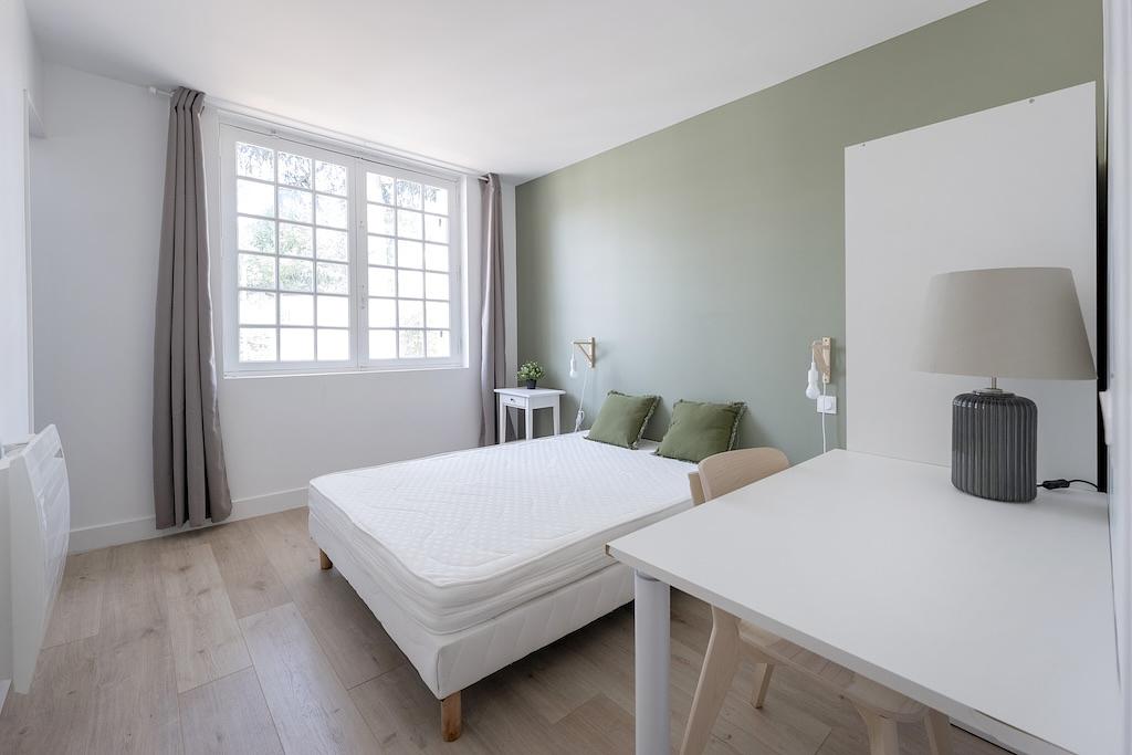 Chaque chambre dispose d’un grand lit double, d’une armoire et d’un bureau avec une salle d'eau privative.
