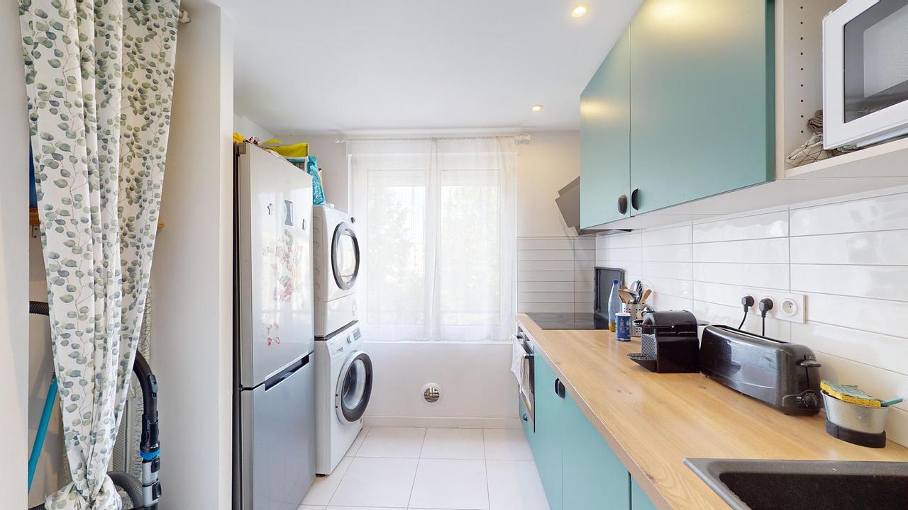 La cuisine est équipée d'un four, d'un réfrigérateur avec congélateur, de plaques de cuisson, d'un lave-linge, d'un sèche-linge, d'une hotte, d'un micro-ondes, de nombreux rangements et de tout le petit électroménager nécessaire.