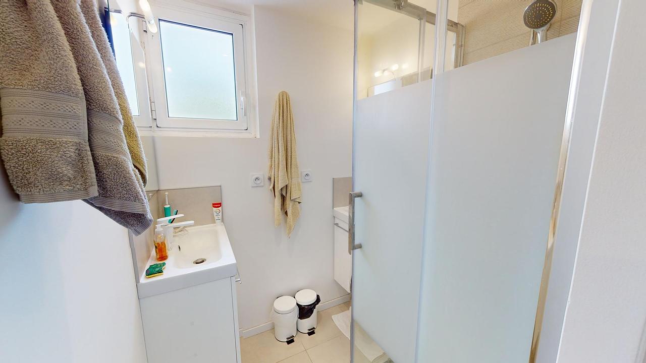 L'appartement dispose de 2 salles d'eau toutes deux équipées de meuble vasque et de cabines de douche. Les WC sont séparés