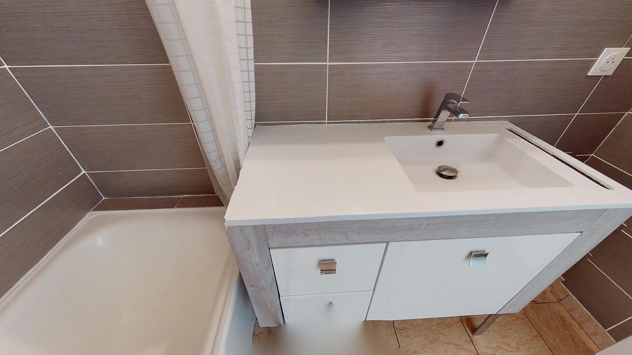 Une première salle de bain dispose d’un meuble vasque et d’une douche, et une seconde salle de bain se munie d’un meuble vasque, d’une baignoire, ainsi que d’un meuble de rangement.