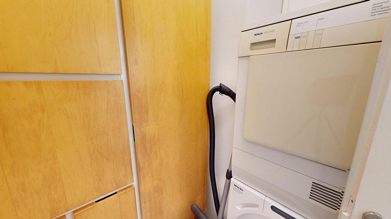 Une buanderie indépendante est également à disposition, équipée d’une machine à laver et d’un sèche-linge.