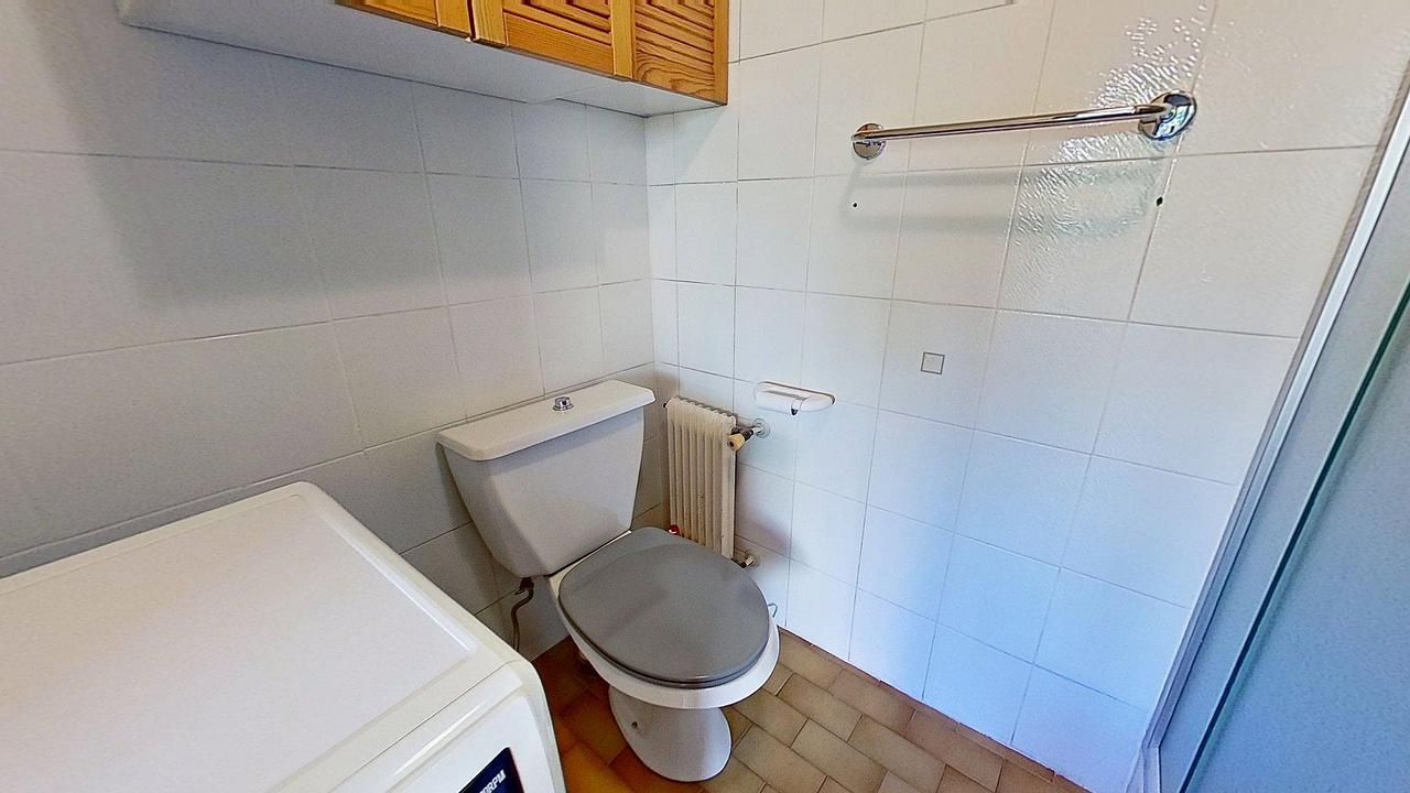 La salle d’eau comprend une douche, un meuble vasque avec miroir, une machine à laver, un WC, ainsi que des rangements pratiques.