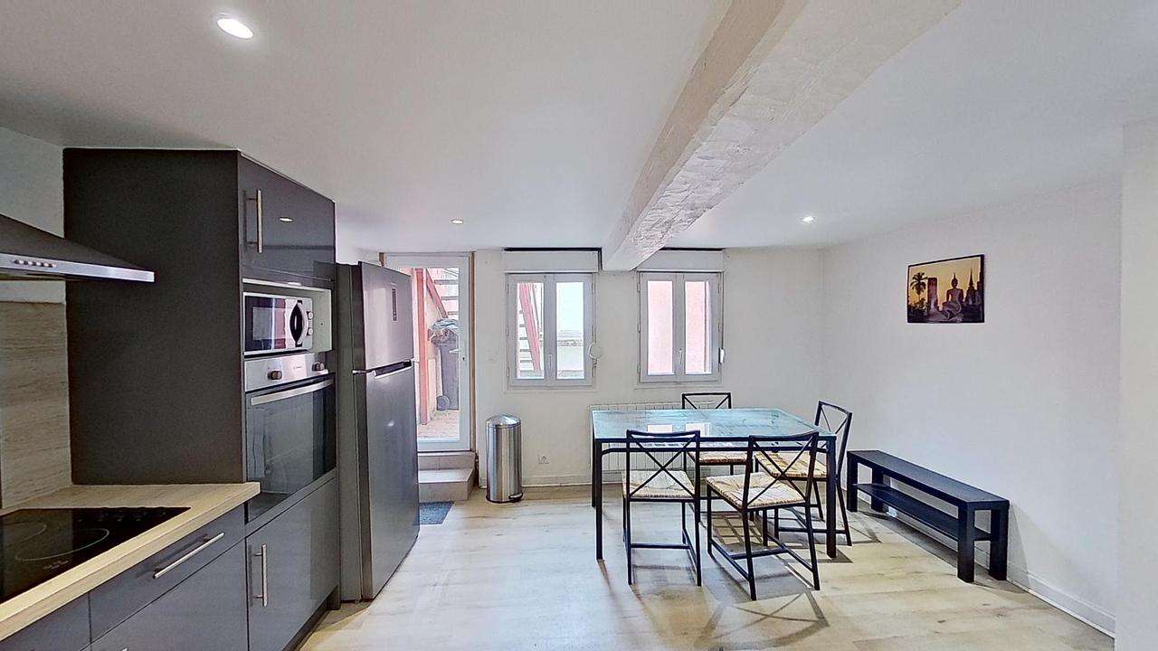 La colocation de 4 chambres possède une belle pièce de vie avec cuisine ouverte.