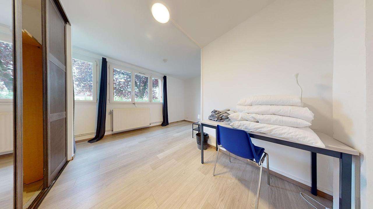 La chambre est équipée d'un lit simple avec rangements, une penderie, ainsi qu'un bureau.