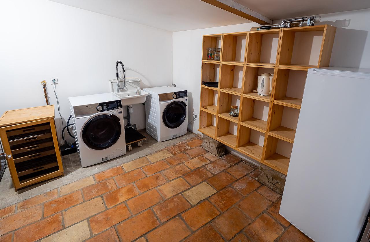 La cuisine s'accompagne d'un meuble de rangement. Elle comporte également un four, un lave-vaisselle, une machine à café, un micro-ondes et une plaque de cuisson.
