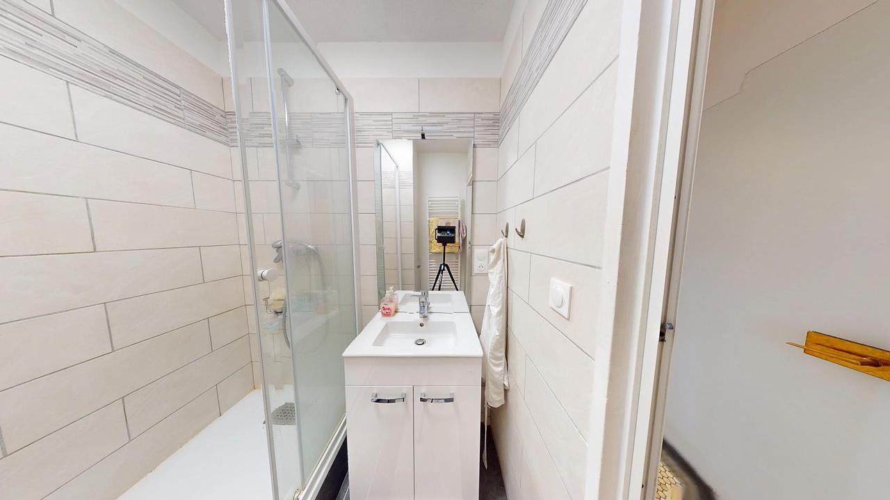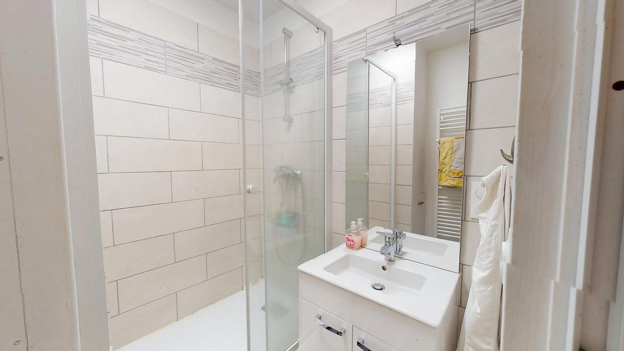 Le logement dispose également d'un espace dédié aux deux salles d'eau et un WC séparé pour plus de confort. La première salle d'eau comprend une douche, un meuble vasque avec miroir, un sèche-serviettes et des rangements. La seconde est équipée d'une grande douche, de grands miroirs, d'un meuble vasque et d'un ample espace de rangement.