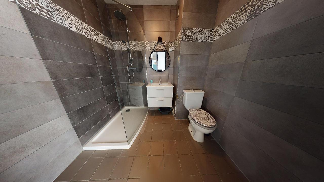 Une salle de bain avec douche, meuble vasque et WC vient compléter ce logement.