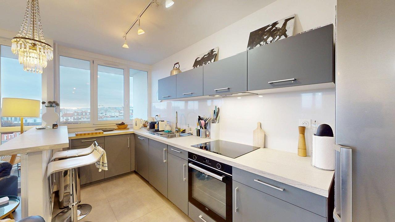 Le logement se trouve au huitième étage d’un immeuble avec ascenseur et dispose également d’un local à vélos.