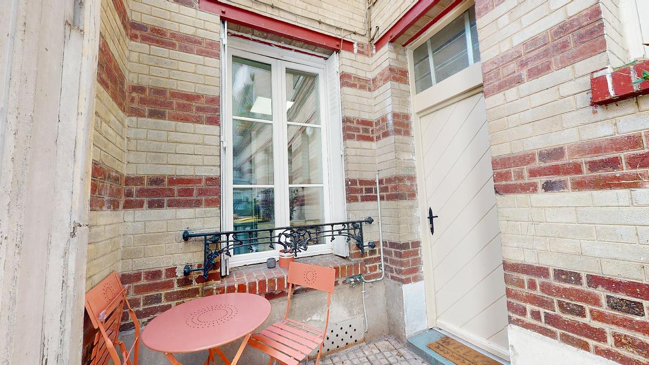 L’appartement dispose d’une charmante entrée. En effet vous disposerez sur le palier, d’une table d’extérieur ainsi que de 2 chaises pour vous permettre de profiter d’un espace de cours intérieur.