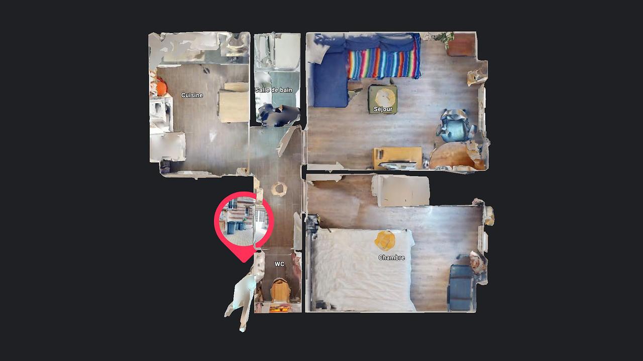 L’intérieur du logement comporte une cuisine, un salon, une salle d’eau, d’un wc indépendant ainsi que d’une grande chambre séparée.