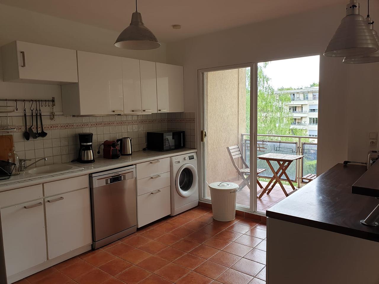 Grande cuisine ouverte, avec un accès direct au balcon.