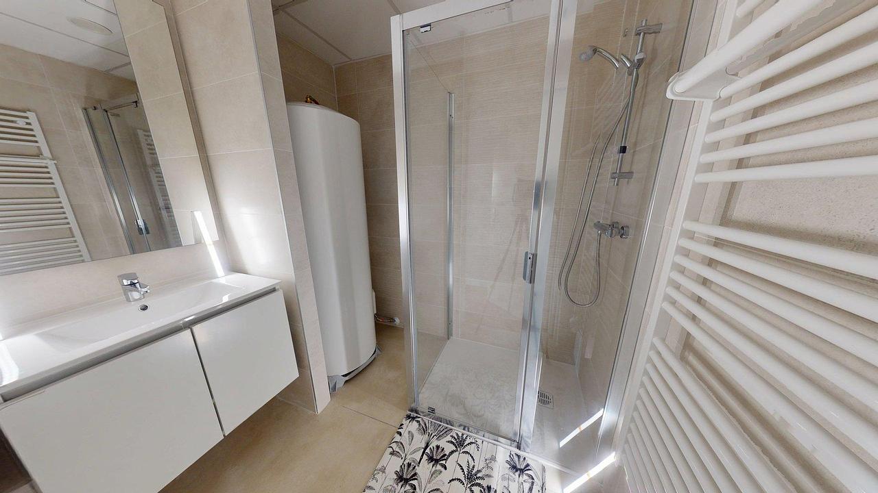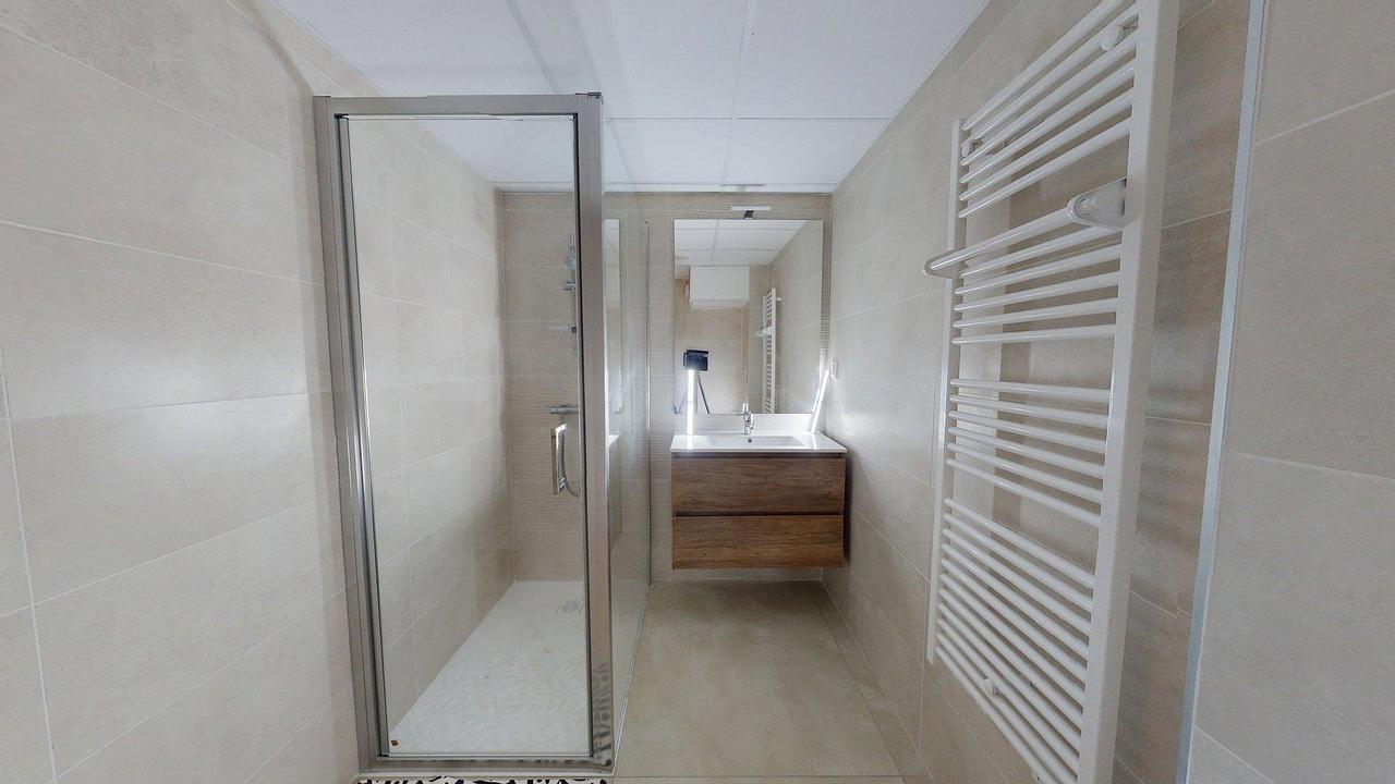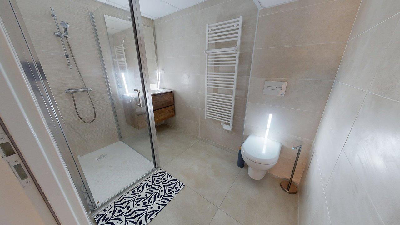 Les deux salles d'eau de chaque étage disposent d'une cabine de douche, d'un meuble vasque avec un miroir ainsi que d'un sèche-serviettes. 3 toilettes sont présentes à chaque étage, dont deux séparées.