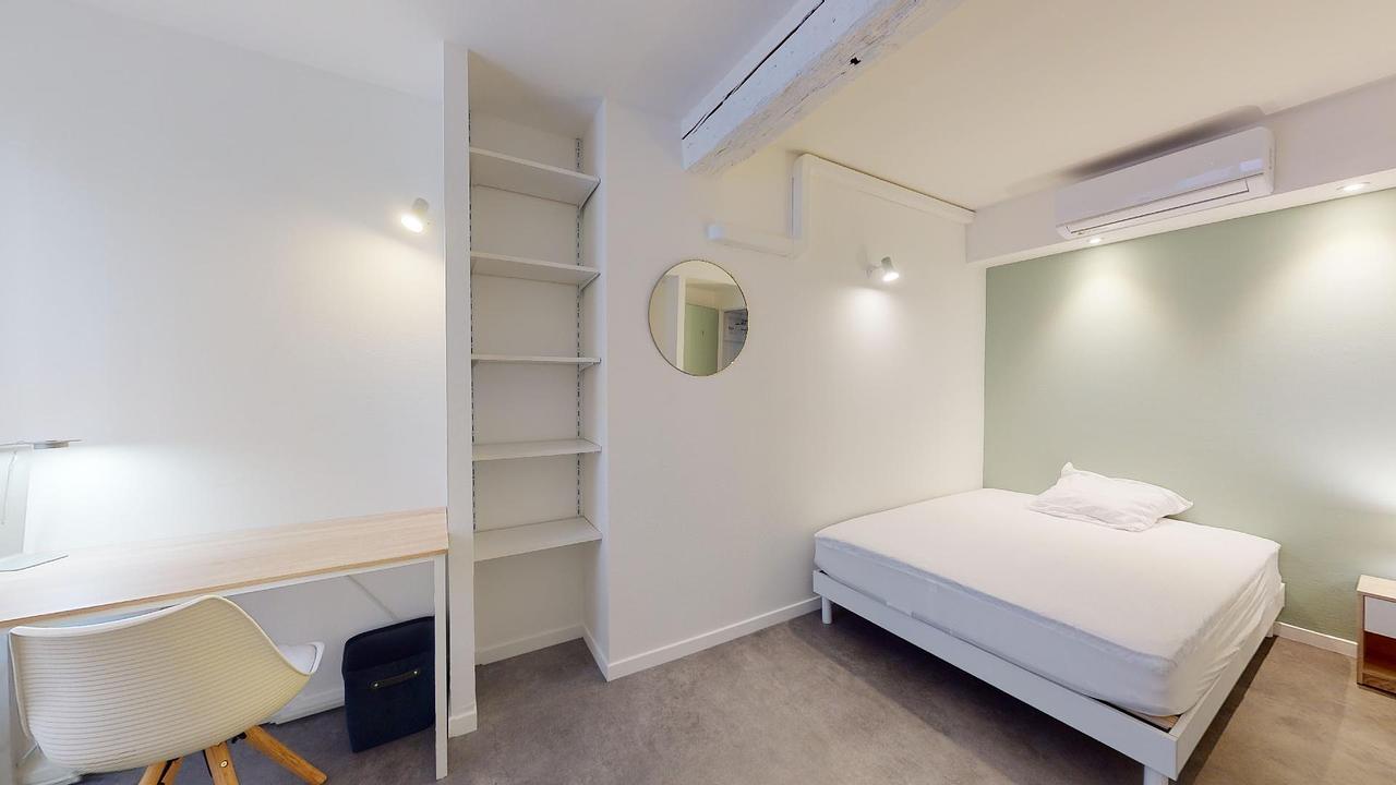 Cette chambre de 31,32 m2 (surface au sol) est située au 3e et dernier étage de la colocation.