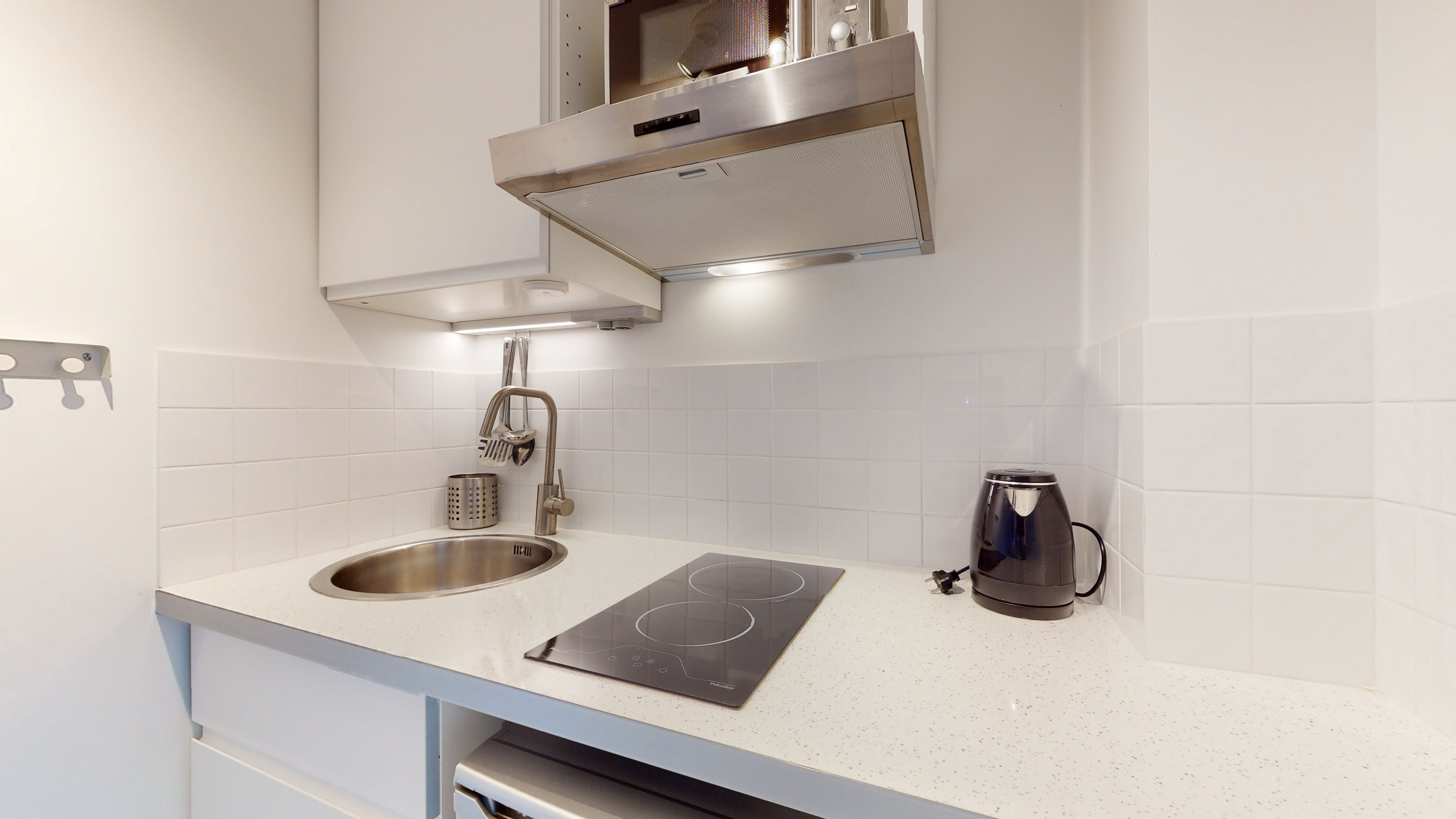Le XL Studio 10, situé au 2ème étage, est un espace personnel juste pour vous. Avec une superficie de 15m², il comprend une cuisine privée et une salle de bain avec douche. Le studio est meublé d'un lit double avec rangements intégrés, d'une penderie pour vos vêtements, d'un fauteuil confortable et d'une table pratique. Vous y trouverez aussi tout ce dont vous avez besoin pour vivre confortablement : micro-ondes, machine à café, réfrigérateur, plaques de cuisson, bouilloire et même des ustensiles de cuisine.