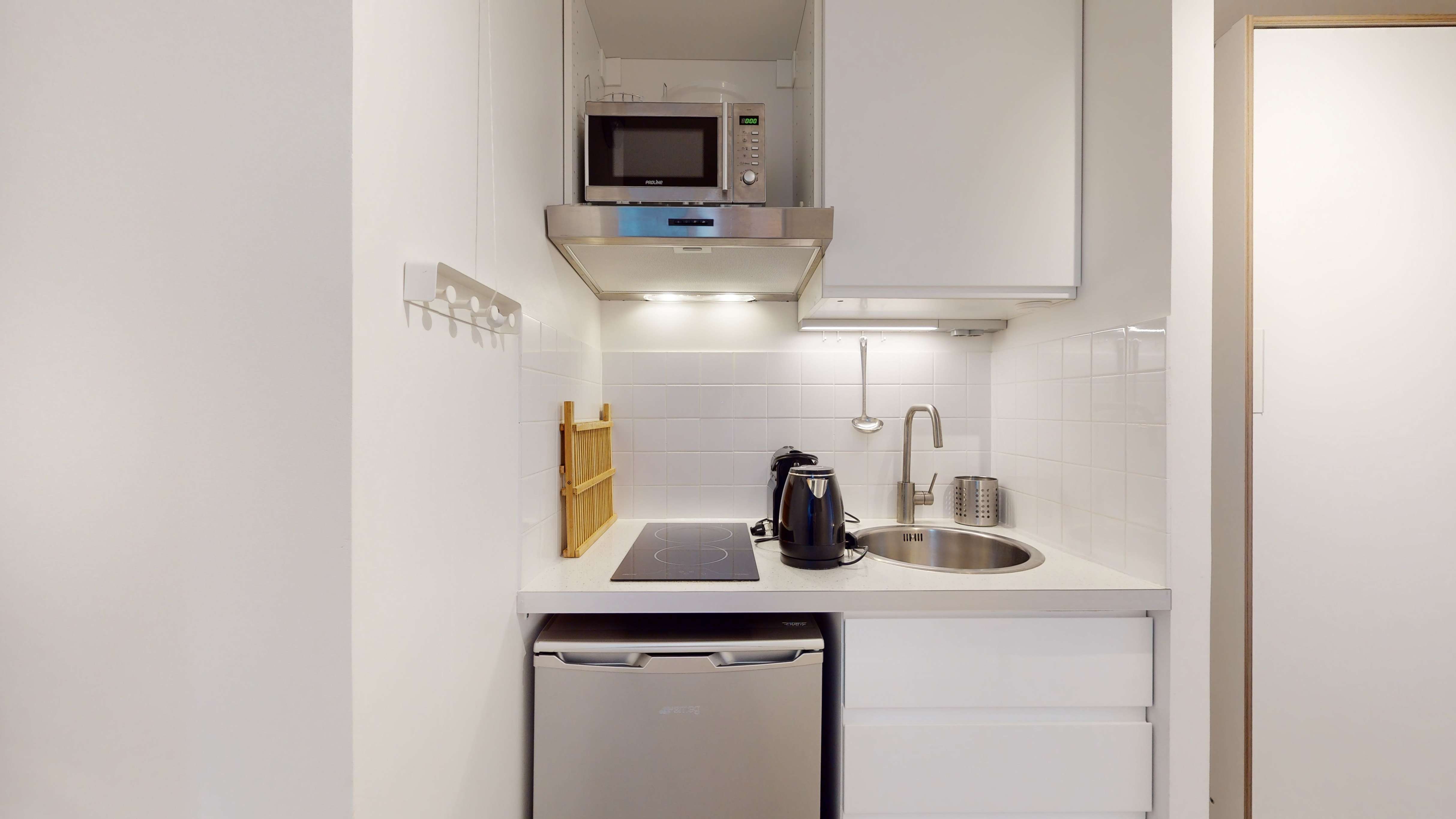 Le studio XL 11, situé au 2ème étage, est un espace privé conçu pour une personne. Avec ses 15m², il comprend une cuisine équipée et une salle de bain privée avec douche. Le studio est meublé d'un lit avec rangements intégrés, d'une penderie spacieuse, d'un fauteuil confortable et d'une table pratique. Les équipements incluent également un radiateur, une machine à café, des ustensiles de cuisine, du linge de maison de qualité supérieure et bien plus encore pour assurer un confort quotidien.