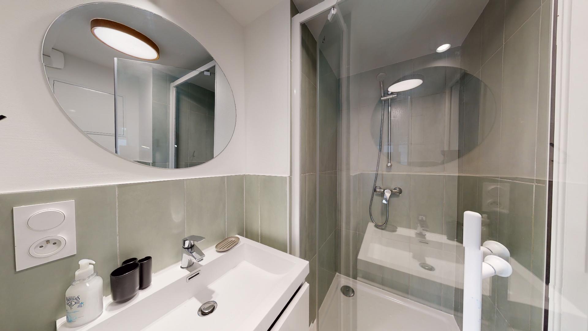 Le studio pour une personne - 4, situé au sous-sol, est un cocon privé de 18m2. Il est équipé d'un lit double confortable avec de la literie de qualité, une armoire pour vos affaires, un petit bureau avec chaise pour travailler ou étudier, et même un coin repas meublé. La salle de bain privée dispose d'une douche moderne. Vous bénéficiez également d'un radiateur pour rester au chaud, d'un micro-ondes, d'un frigo et de tout le nécessaire pour cuisiner.