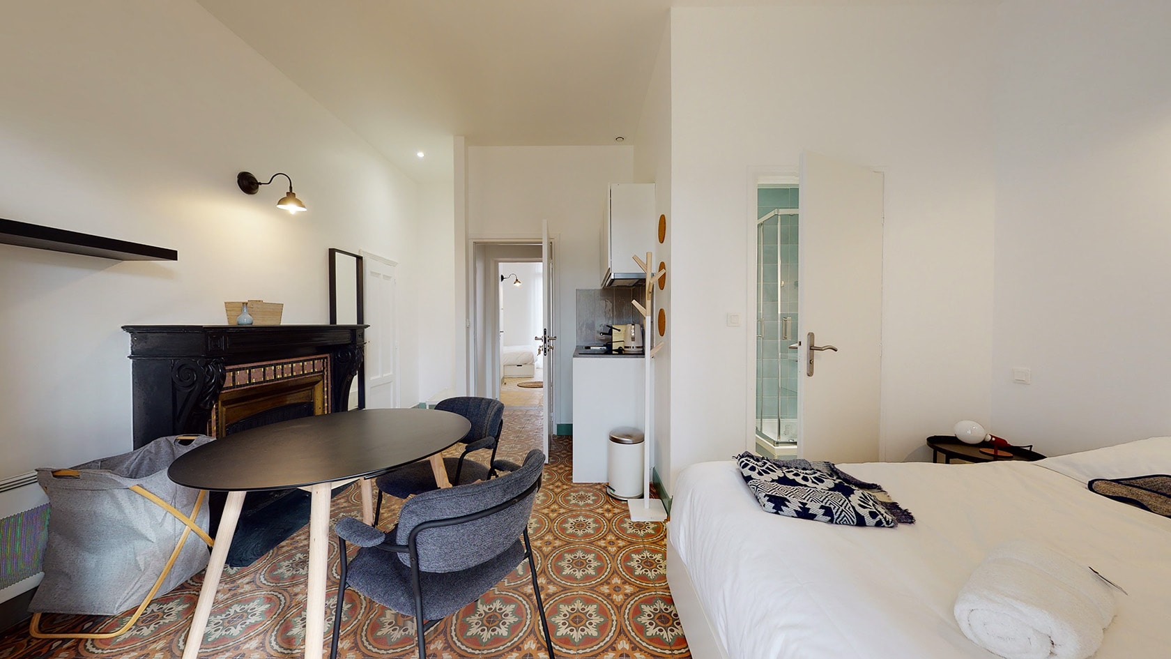 Bienvenue à la résidence Zenith, un espace de coliving chaleureux et convivial. Avec ses 460m2 répartis sur trois niveaux, cette maison offre dix-huit unités privatives et des espaces communs où il fait bon vivre. Au rez-de-chaussée, profitez d'une salle de projection pour vos soirées cinéma, d'une cuisine moderne ouverte sur la salle à manger pour partager des repas conviviaux, et d'un espace buanderie équipé pour faciliter votre quotidien. À l'extérieur, détendez-vous dans le grand jardin arboré de 900m². Un deuxième espace cuisine est également disponible au premier étage pour plus de commodité.