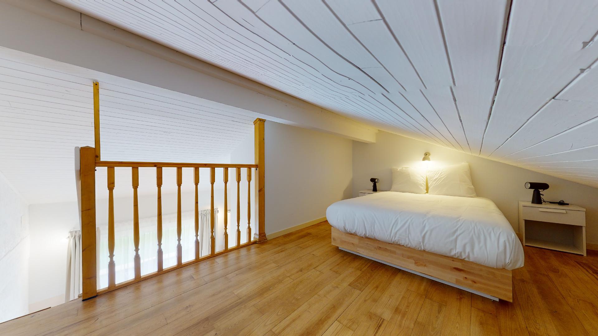 La chambre "Room for one person - 12" est un cocon personnel de 16m² situé à l'étage de la mezzanine. Elle est équipée d'un lit double en hauteur avec rangement intégré, d'une armoire spacieuse, d'une table pratique, d'une chaise et d'un fauteuil confortable pour vos moments de détente. La salle de bain privée comprend une douche moderne, un lavabo et des toilettes. La chambre bénéficie aussi d'un radiateur pour les jours plus frais et d'une lampe de chevet pour vos lectures nocturnes.