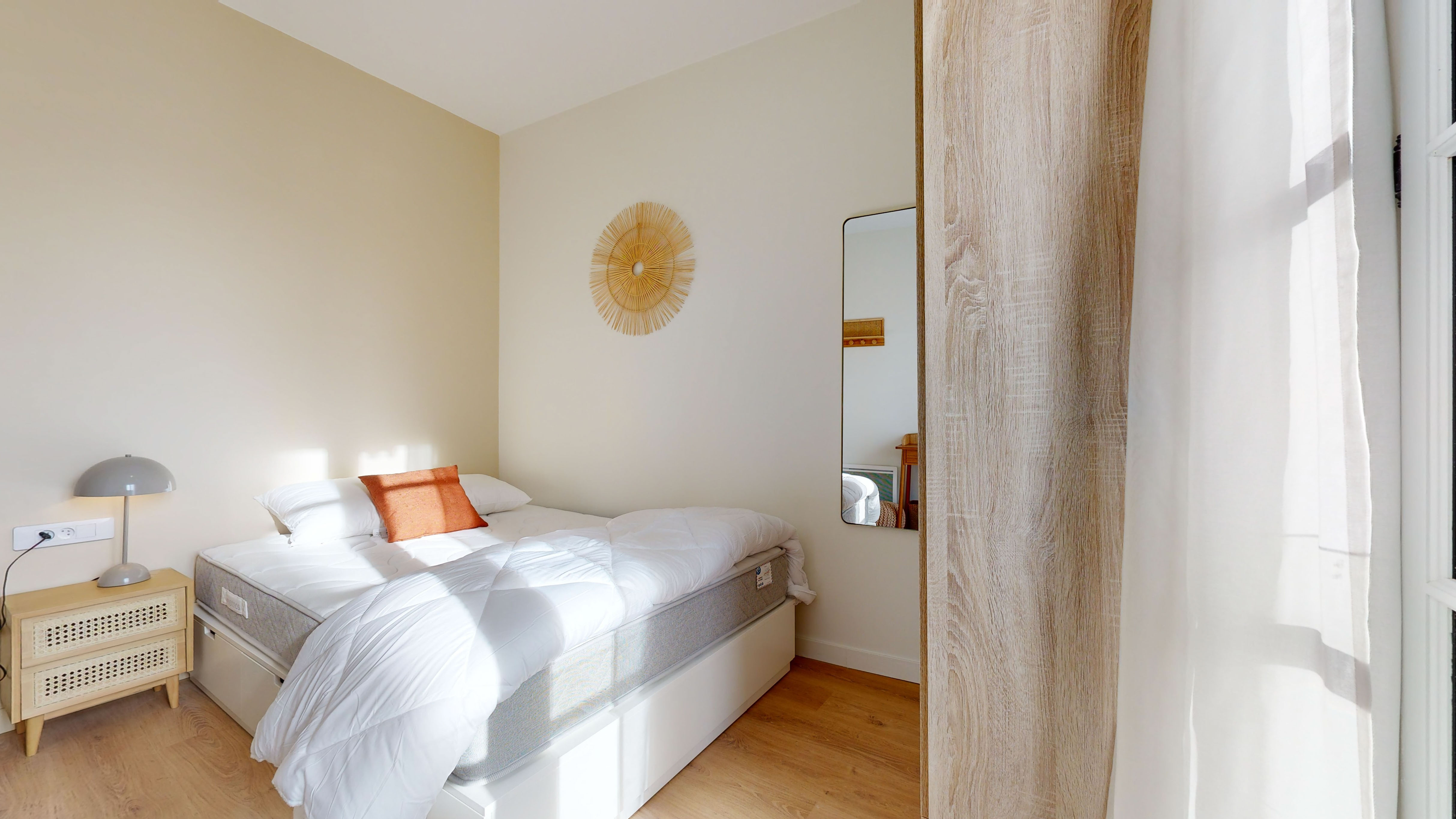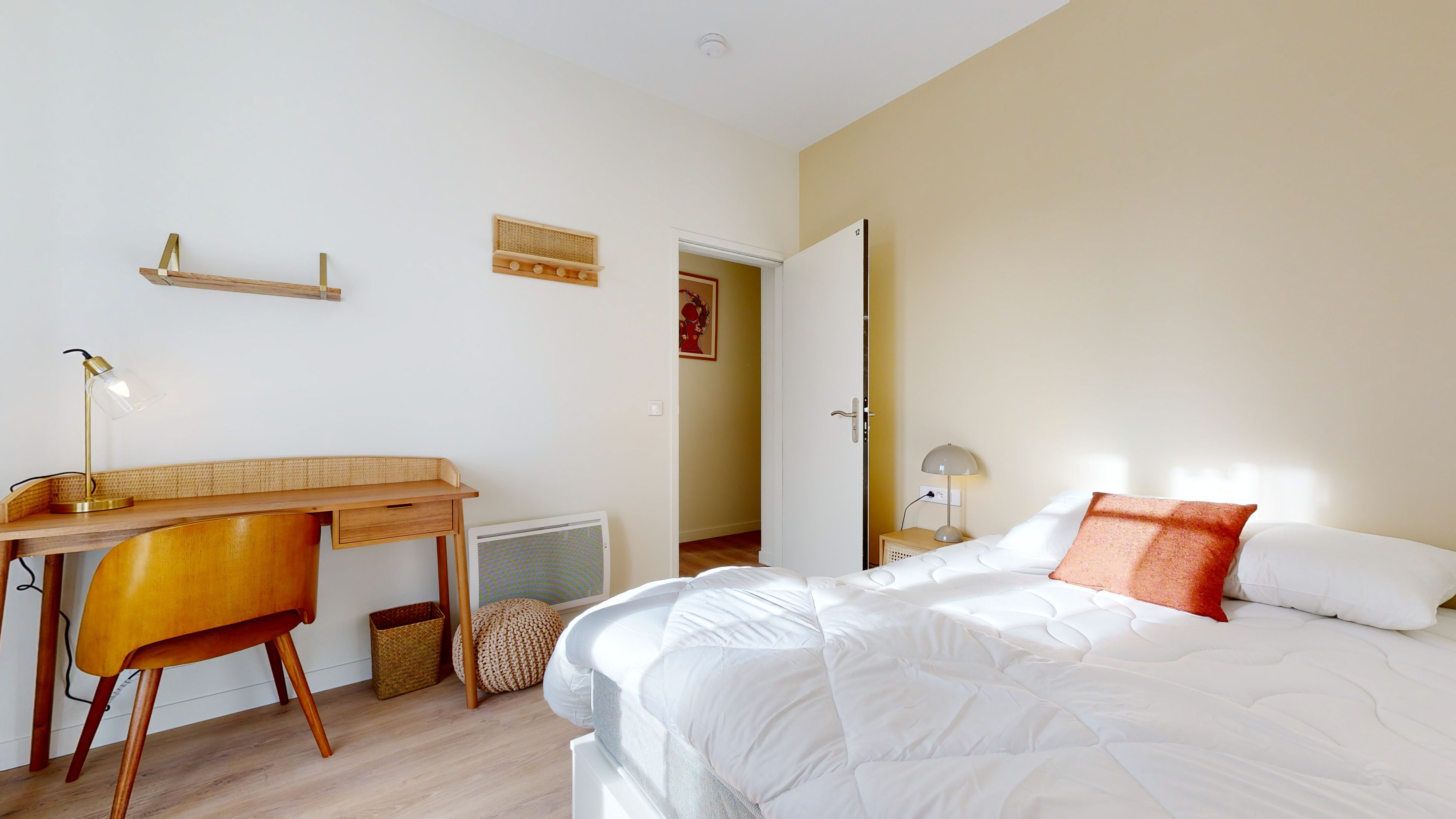 Votre future chambre, la "Room for one person - 12", est un cocon douillet situé au deuxième étage. Elle est idéale pour une personne et comprend tout ce dont vous avez besoin : un confortable lit double, une armoire pour vos affaires, un bureau et une chaise pour travailler ou étudier, ainsi qu'un radiateur pour rester au chaud. Vous partagerez une salle de bain moderne avec une autre personne.