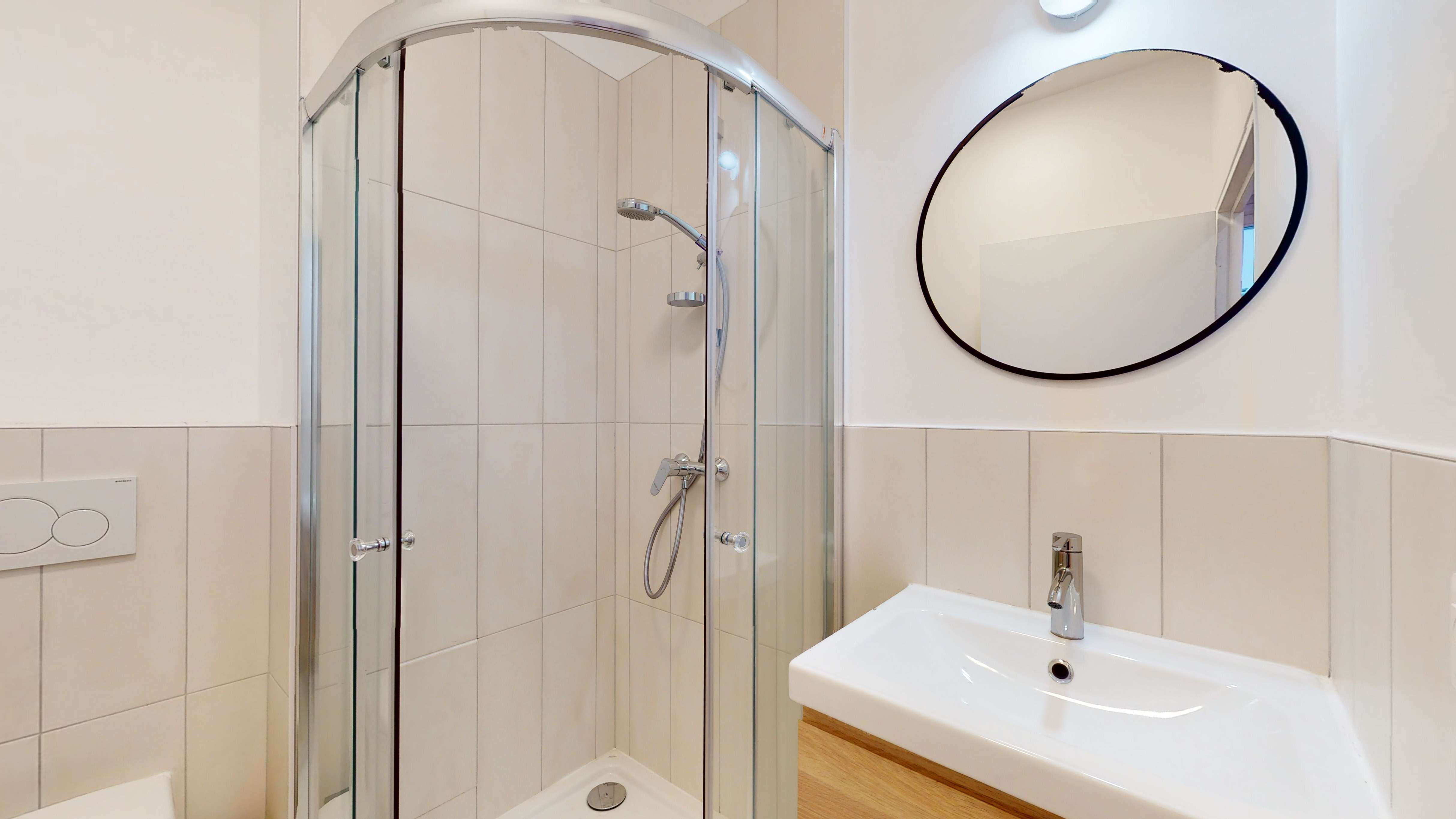 Votre future chambre, la "Room for one person - 2", est un cocon de confort situé au rez-de-chaussée. D'une superficie de 15m2, elle est parfaite pour une personne et dispose d'une salle de bain privée avec douche. Vous y trouverez un lit double douillet, une armoire spacieuse pour vos affaires, ainsi qu'un bureau et une chaise pour travailler ou étudier en toute tranquillité. Un radiateur assure votre confort thermique tout au long de l'année.