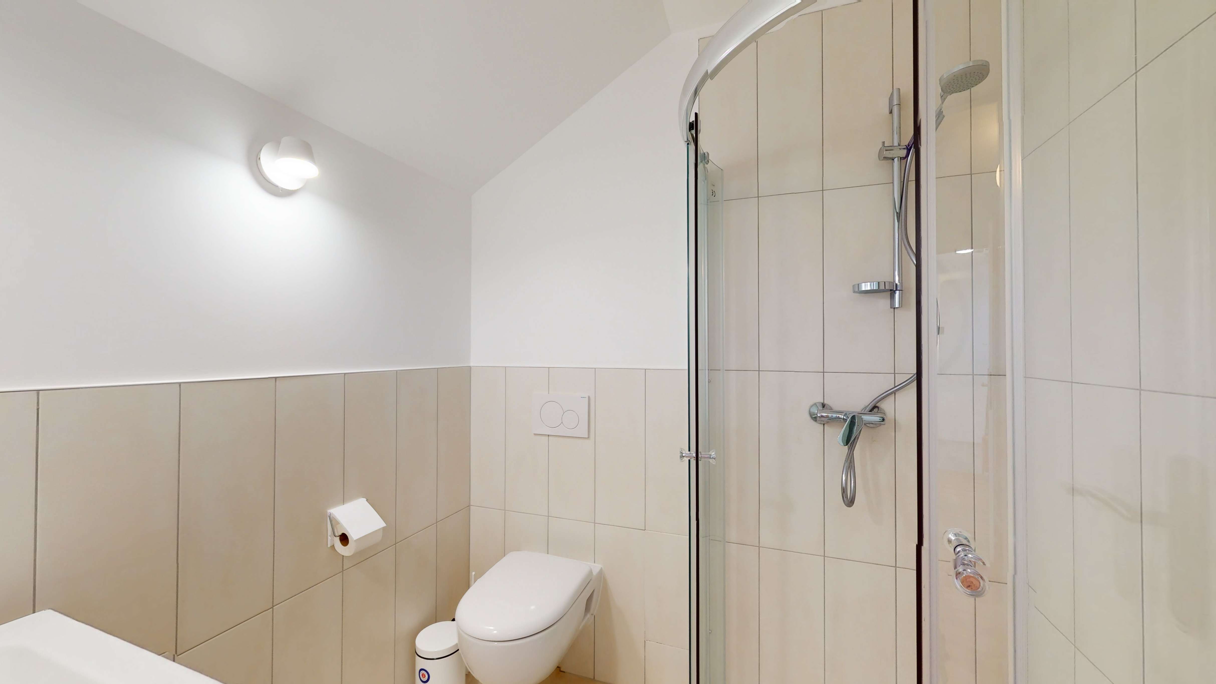 La chambre "Room for one person - 8", située au deuxième étage, est conçue spécialement pour une personne. Elle est équipée d'un confortable lit double, d'une armoire pour vos affaires, d'une chaise et d'un bureau pour travailler ou étudier. La salle de bain privée comprend une douche moderne, un lavabo et des toilettes. Un radiateur assure une température agréable tout au long de l'année.