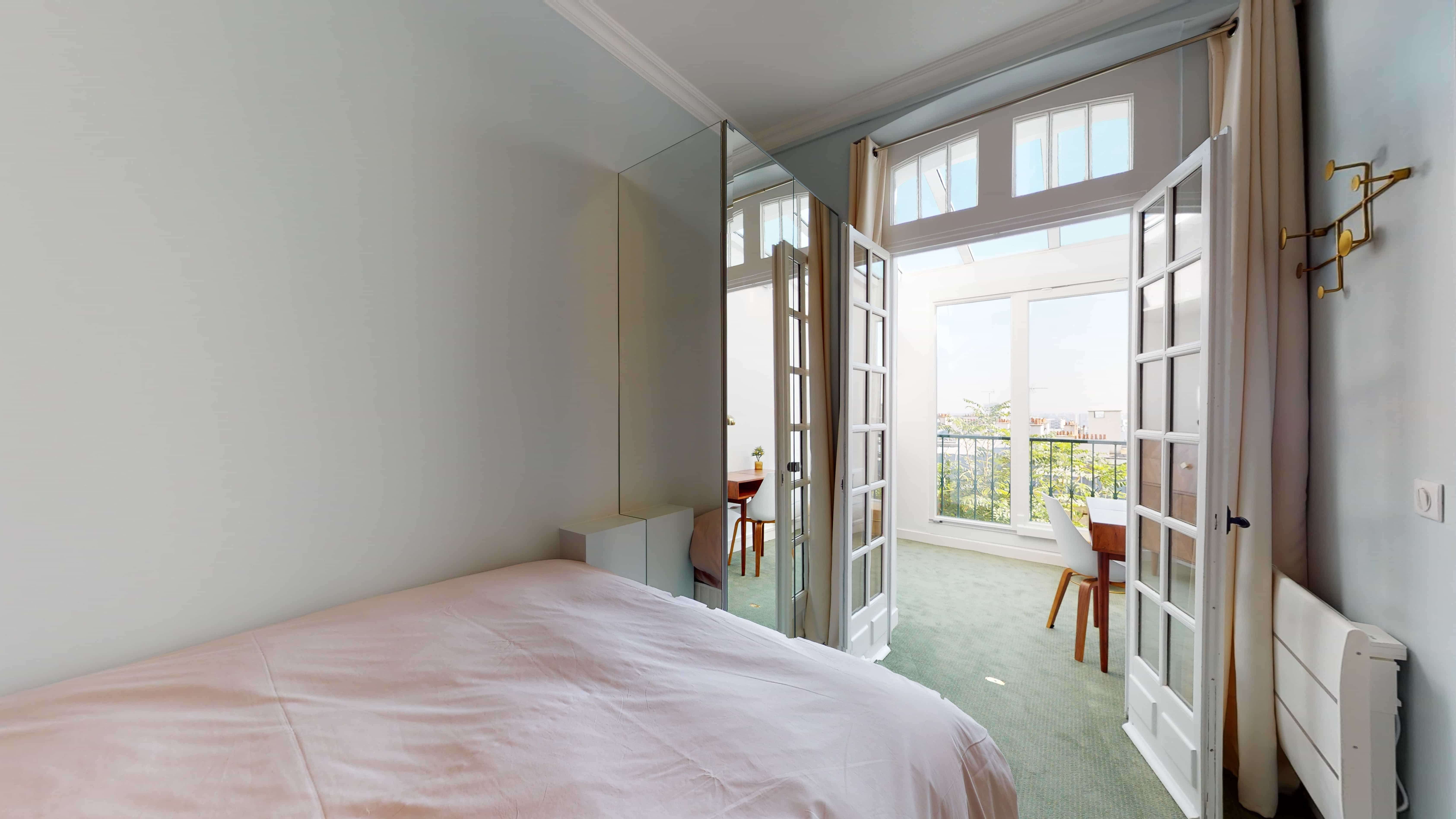 Votre chambre privative, située au rez-de-chaussée, est un véritable cocon de 19m2 conçu pour une personne. Elle est équipée d'une salle de bain privée avec douche, d'un lit confortable avec rangement intégré, d'une armoire pour vos affaires, d'un bureau et d'une chaise pour travailler ou étudier dans les meilleures conditions. Vous disposerez également d'un mini frigo, d'un micro-onde et de la vaisselle nécessaire pour préparer des repas simples sans avoir à quitter votre chambre.