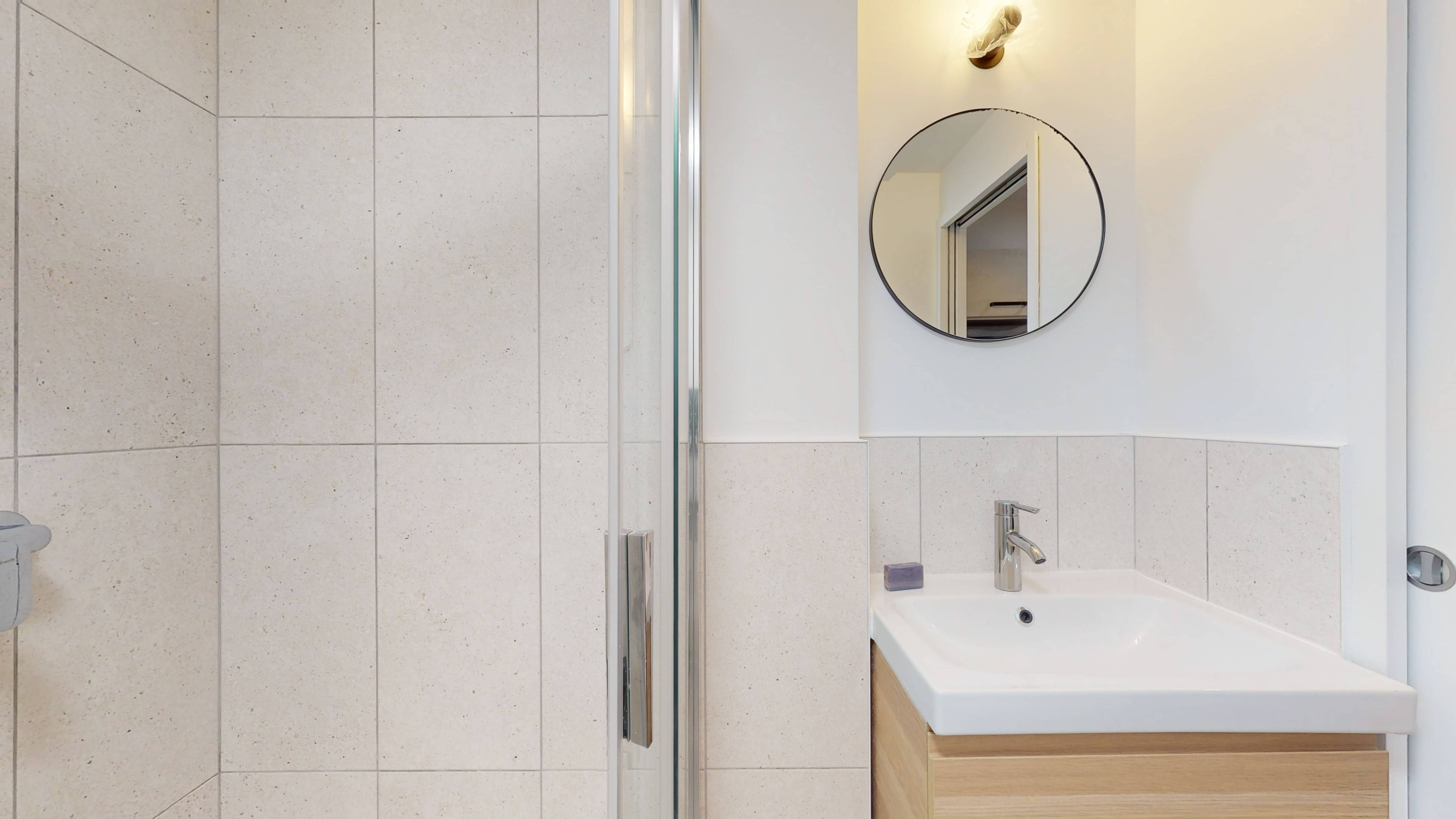 La chambre "Room for one person - 17" est un cocon parfait pour une personne. Située au premier étage de la deuxième maison, elle offre tout le confort nécessaire : un lit double avec rangement intégré, une armoire spacieuse pour vos affaires, un bureau et une chaise pour travailler ou étudier, et même des étagères murales. La salle de bain privative est équipée d'une douche moderne, d'un lavabo et de toilettes. La chambre bénéficie également d'une connexion internet haut débit.