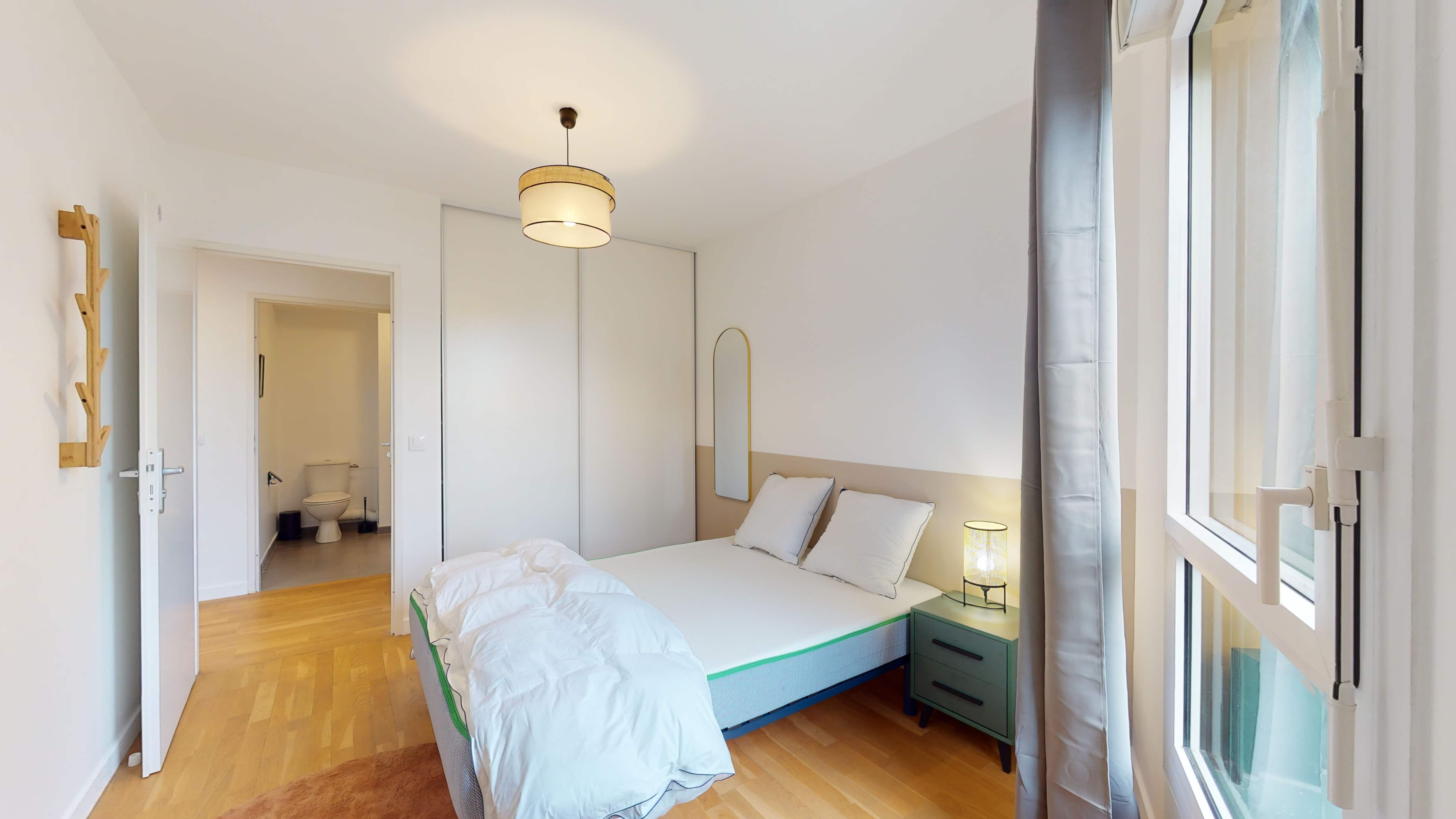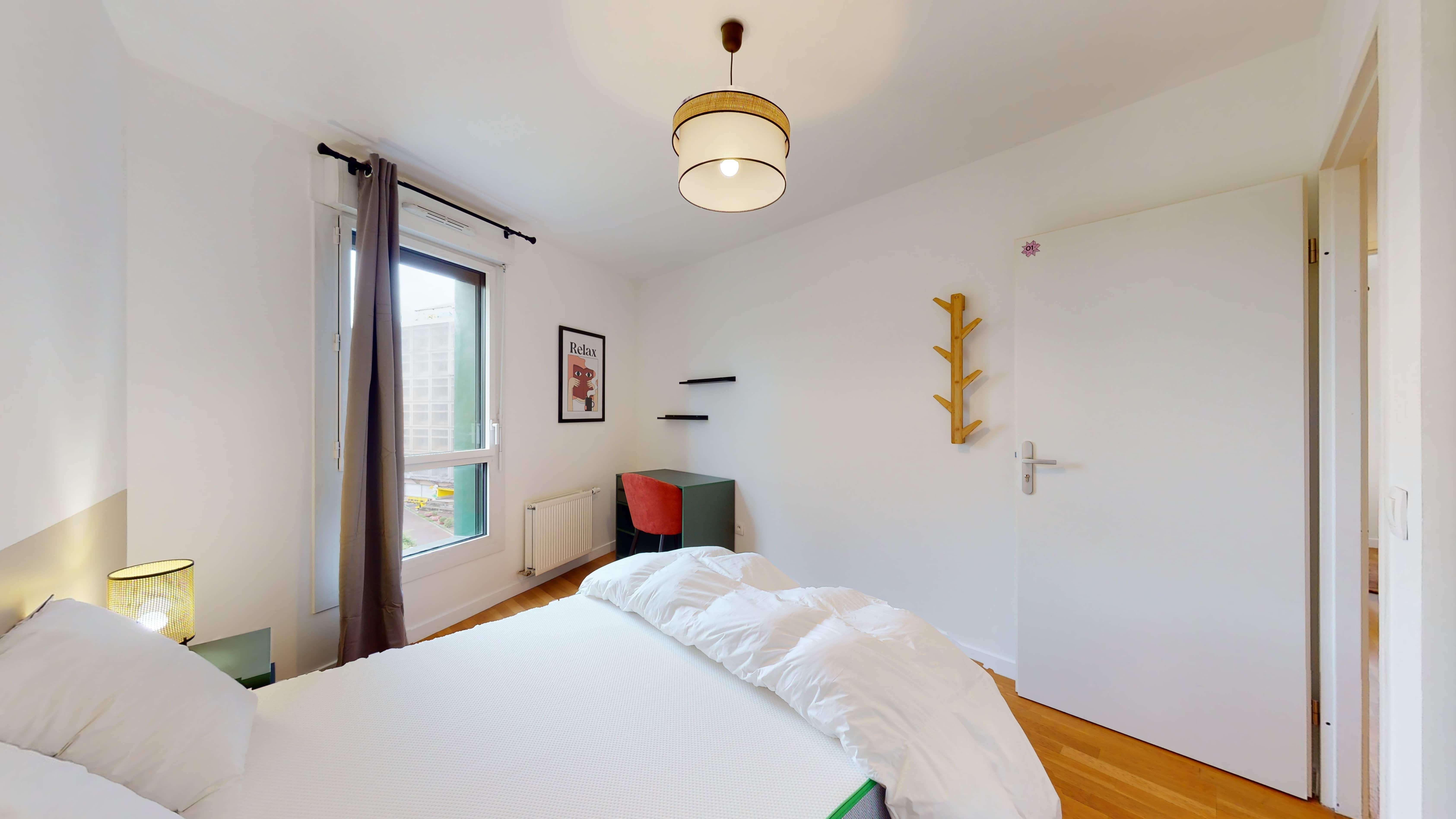 La chambre "Room 1" est un cocon douillet de 10 m² conçu pour une personne. Avec son lit double confortable, son bureau pour travailler et une armoire pour vos affaires, elle a tout ce qu'il faut pour un quotidien pratique et serein. Vous partagerez une salle de bain bien entretenue avec d'autres colocataires.