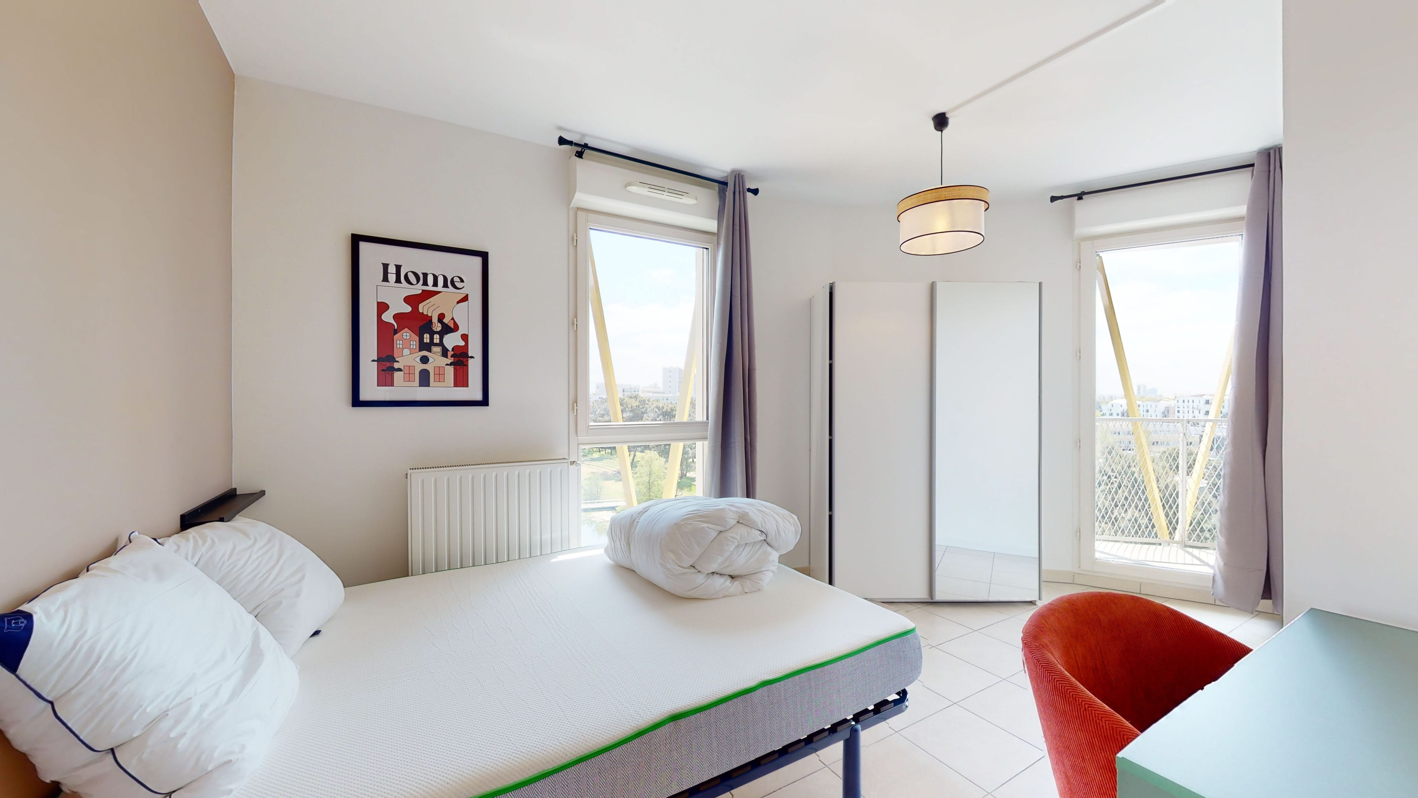 Question emplacement, vous êtes gâtés ! La colocation se situe à quelques minutes à pied du tramway Berges du Lac (Tram C), ce qui rend les déplacements super faciles. Le quartier est agréable avec des commerces et des parcs où se promener ou faire du sport.