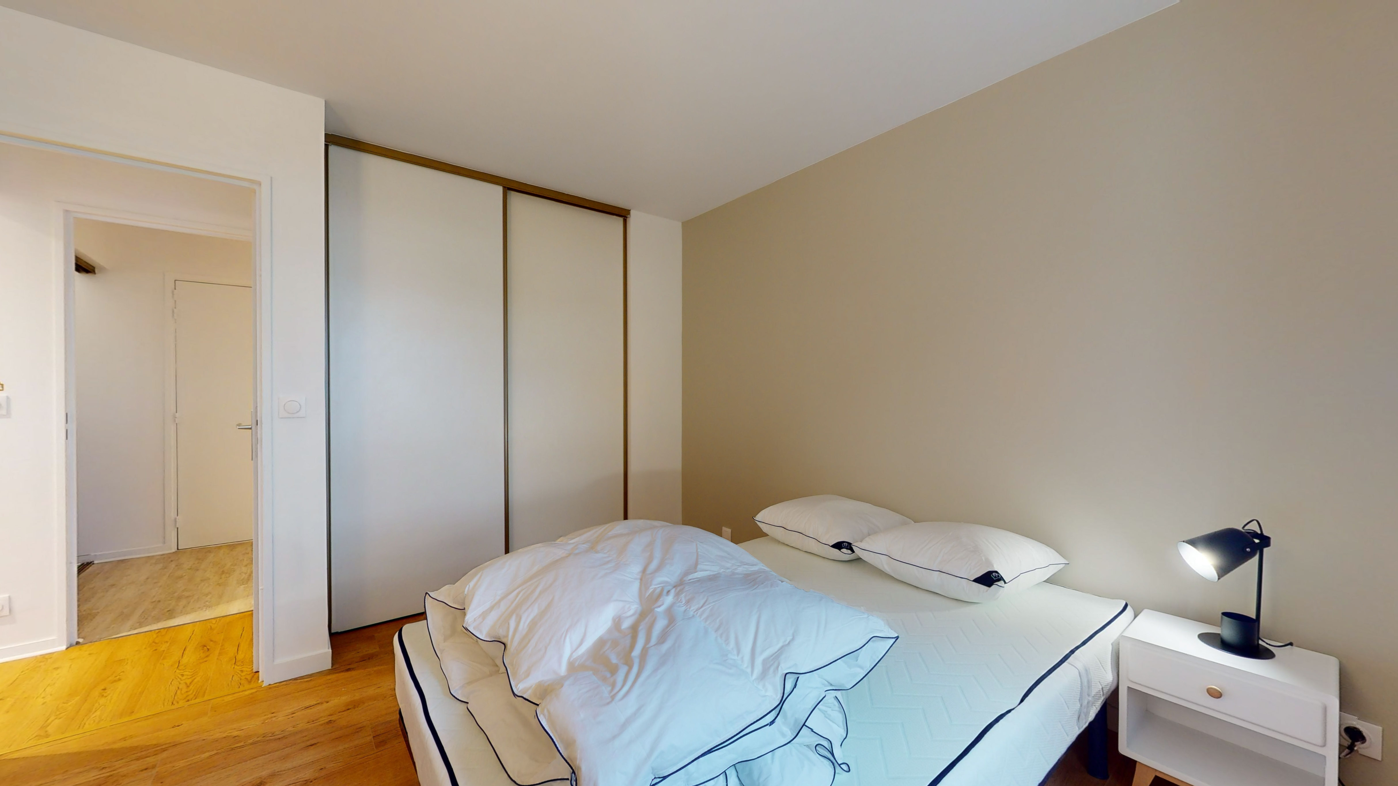 La chambre disponible, Room 3, est un espace cosy de 11 m² conçu pour une personne. Elle comprend un lit double avec une literie de qualité, une armoire pour ranger vos affaires, un bureau pour travailler ou étudier et une chaise. Vous bénéficiez également d'une salle de bain partagée équipée d'une douche moderne et d'un lavabo. La tranquillité et le confort sont assurés pour un bien-être optimal.