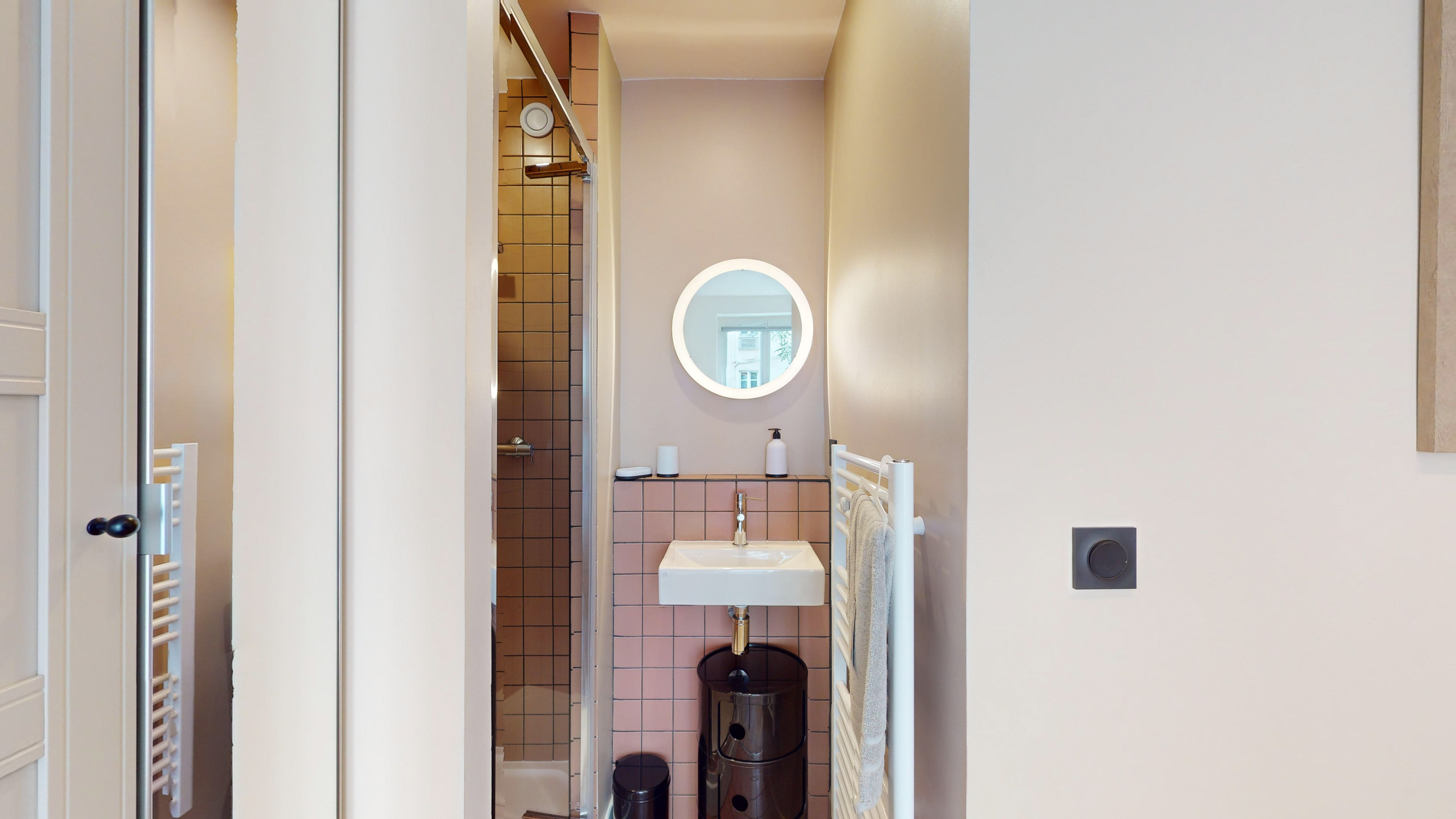 Votre chambre privée, située au troisième étage, est un véritable cocon personnel. Elle est équipée d'un lit double confortable avec des rangements intégrés, une armoire pour vos affaires, un bureau avec chaise pour travailler et une salle de bain privée avec douche. La pièce est également pourvue d'internet haut débit et de tout le nécessaire pour votre confort.