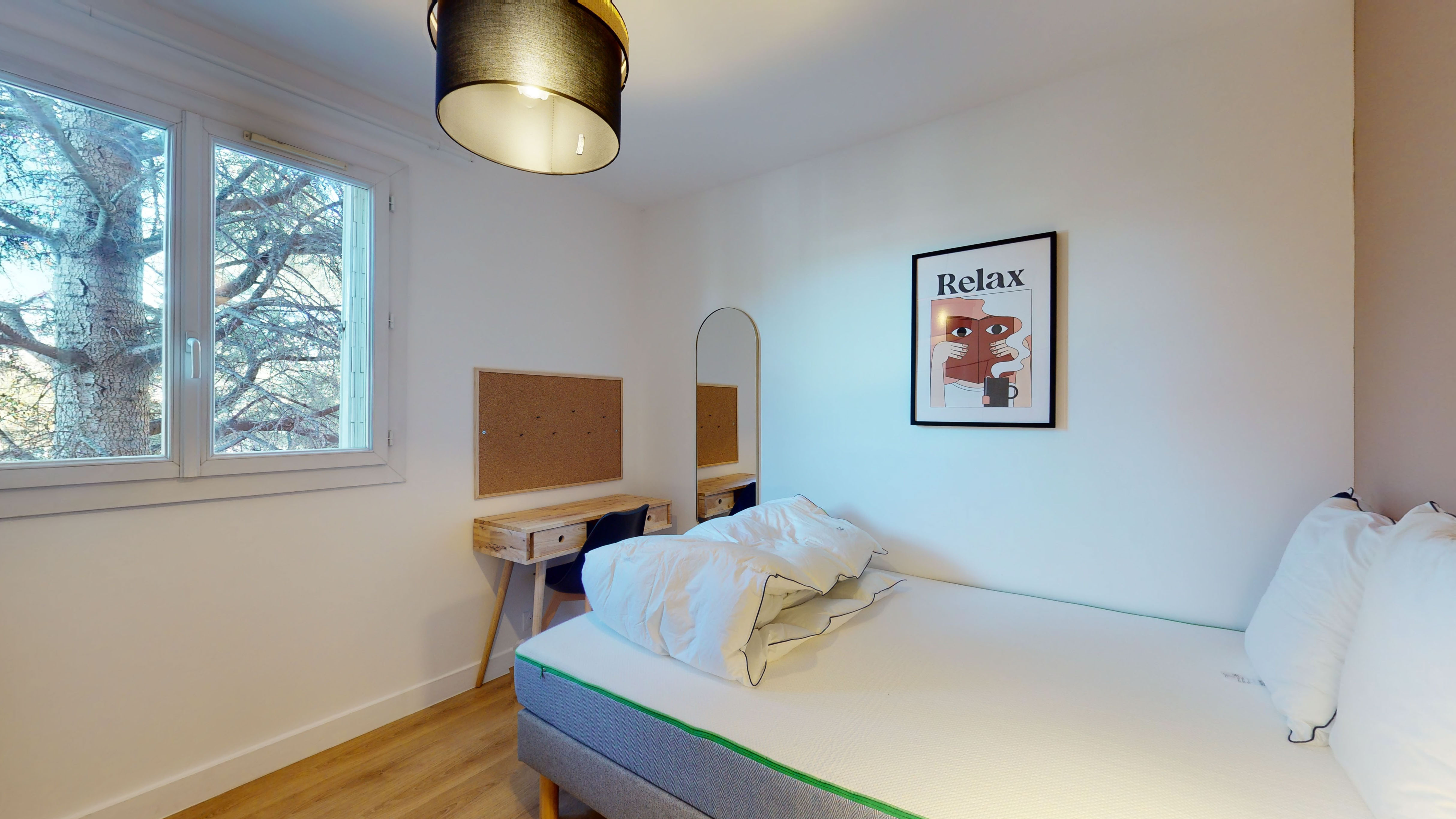 Room 3 est une chambre douillette conçue pour une personne. Elle dispose d'un lit double confortable, d'une armoire pour vos vêtements, d'une chaise et d'un bureau pour travailler ou étudier. La chambre partage une salle de bain bien équipée avec d'autres locataires de l'appartement.