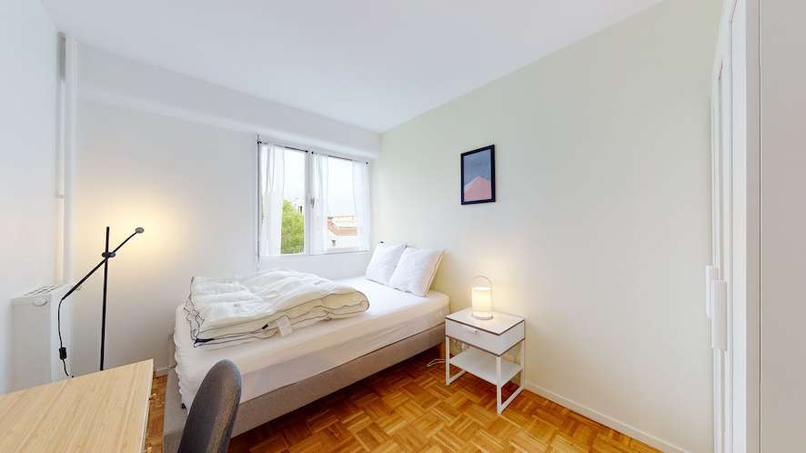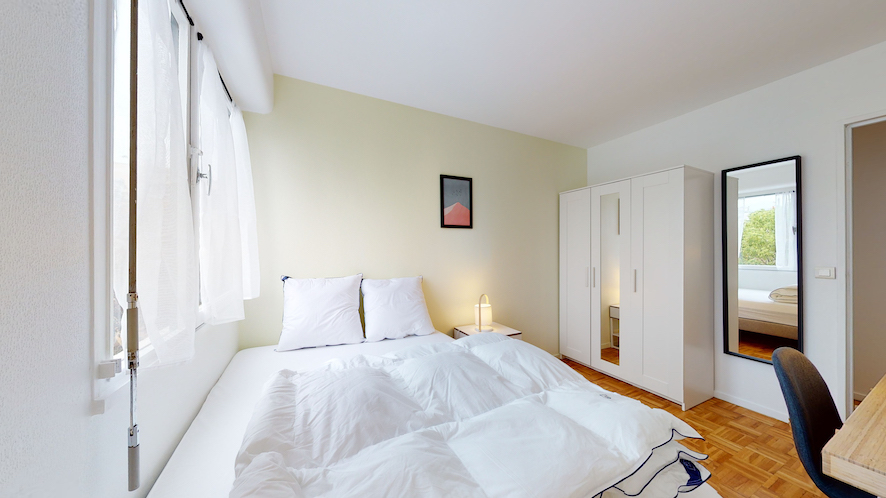 La chambre proposée, Room 3, est idéale pour une personne. D'une superficie de 9 m², elle est meublée d'un confortable lit double, d'une armoire pour ranger vos affaires, d'une chaise et d'un bureau pour travailler ou étudier. La chambre partage une salle de bain équipée d'une douche, d'un lavabo et de toilettes avec les autres locataires.