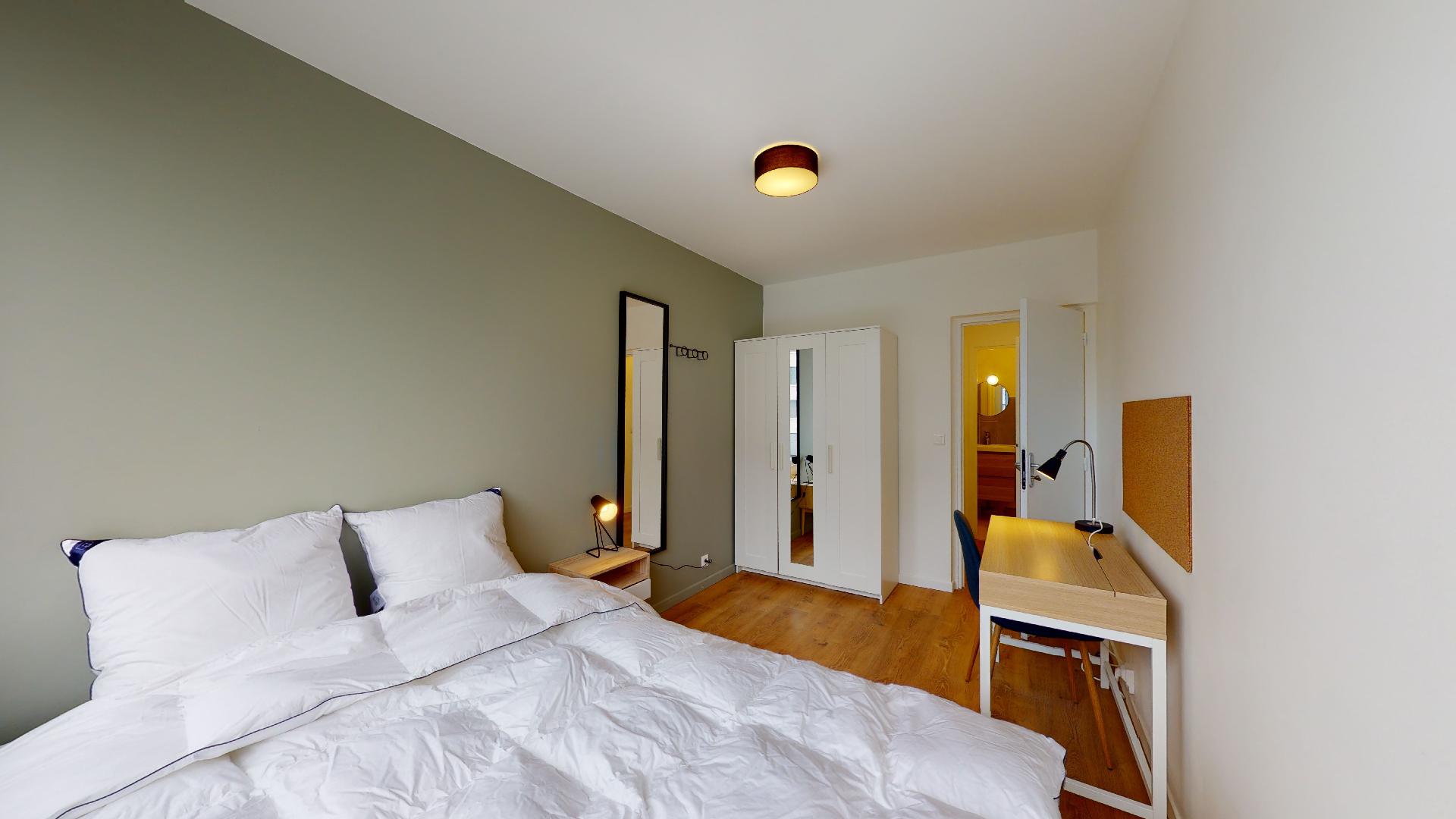La Room 5 est spécialement conçue pour vous offrir un espace personnel agréable et fonctionnel. Avec ses 10 m², cette chambre pour une personne est meublée d'un lit double confortable, une armoire pour vos affaires, un bureau pour travailler et une chaise. Vous bénéficierez également d'une salle de bain partagée bien équipée avec douche et toilettes.