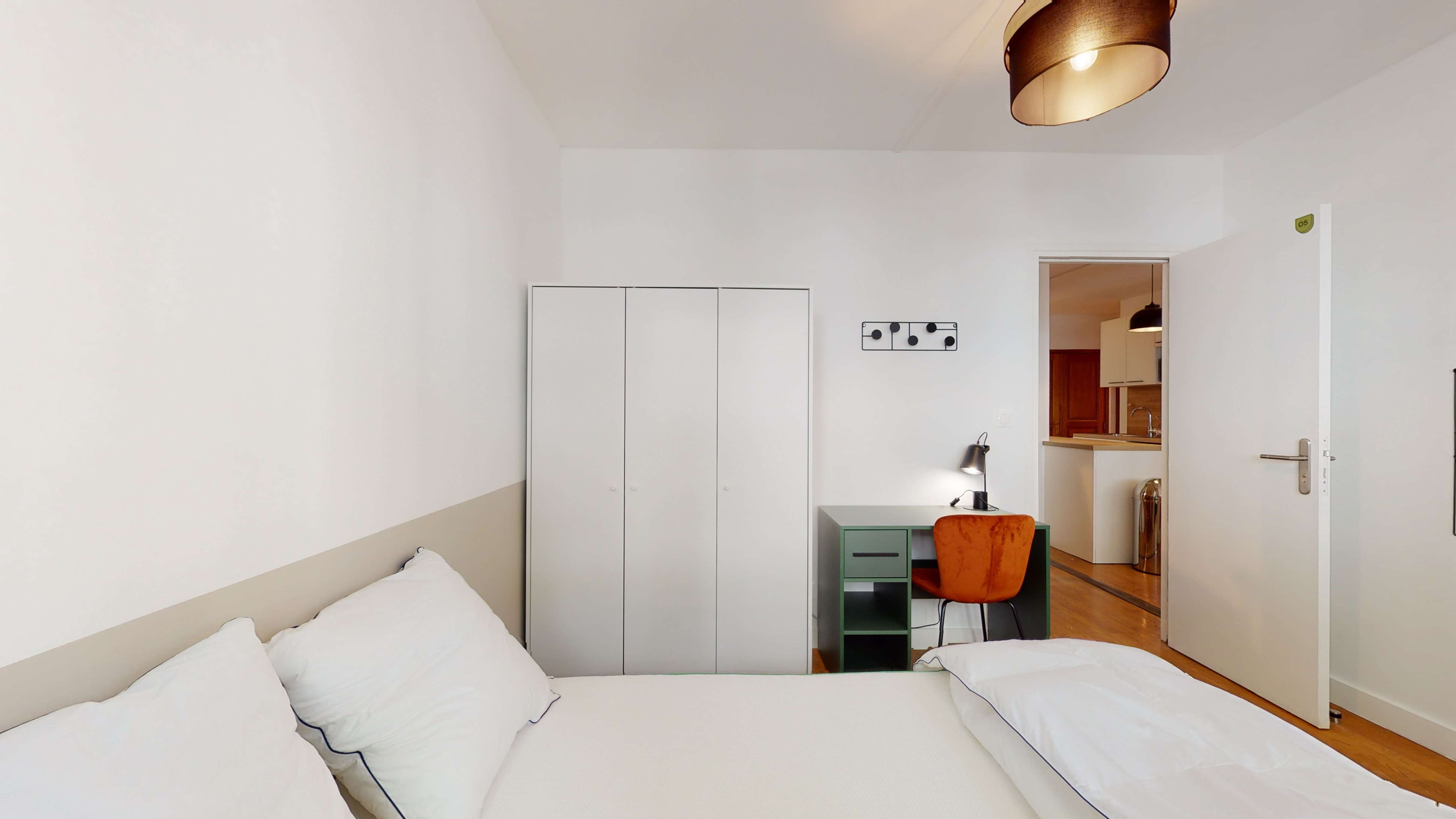 La chambre disponible, Room 6, d'une superficie de 11m², est parfaitement conçue pour une personne. Elle est meublée avec un lit double confortable, une armoire pour vos affaires, ainsi qu'un bureau et une chaise pour travailler ou étudier en toute tranquillité. La chambre bénéficie également d'une connexion internet à haut débit et d'un éclairage de qualité.