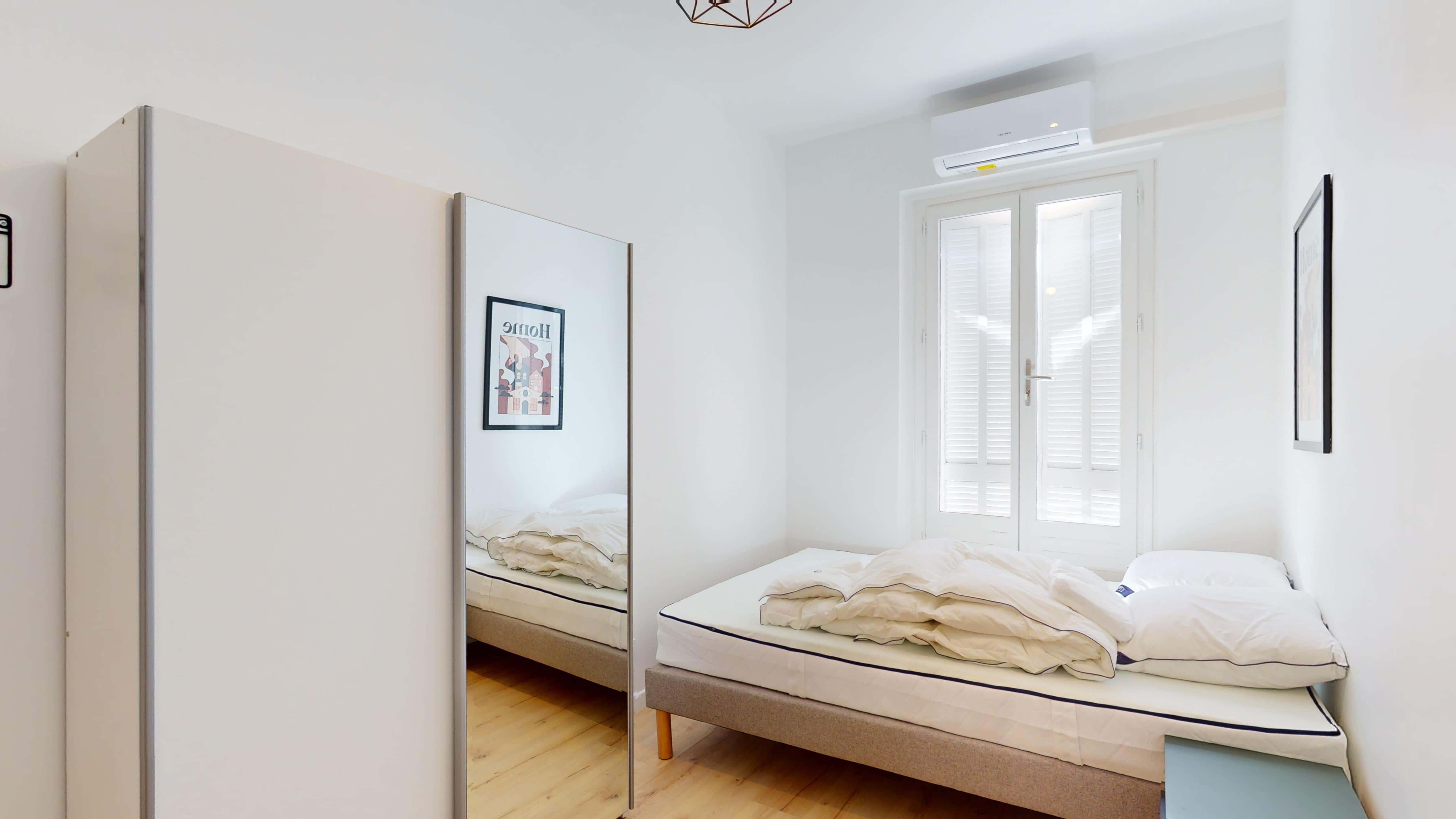 La chambre numéro 3 est parfaite pour une personne. Elle a un lit double confortable, une armoire pour vos vêtements, un bureau et une chaise pour travailler ou étudier. La chambre mesure 11 m² et offre un espace privé agréable. Vous partagerez une salle de bain moderne avec d'autres locataires.