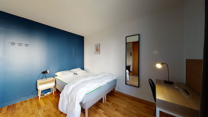 La chambre Room 1 est juste pour vous, avec un lit double confortable, une armoire pour vos vêtements, un bureau pour travailler et une chaise. C'est une chambre douillette de 13 mètres carrés où vous pourrez bien dormir et étudier. Elle a aussi une salle de bain partagée avec une douche.