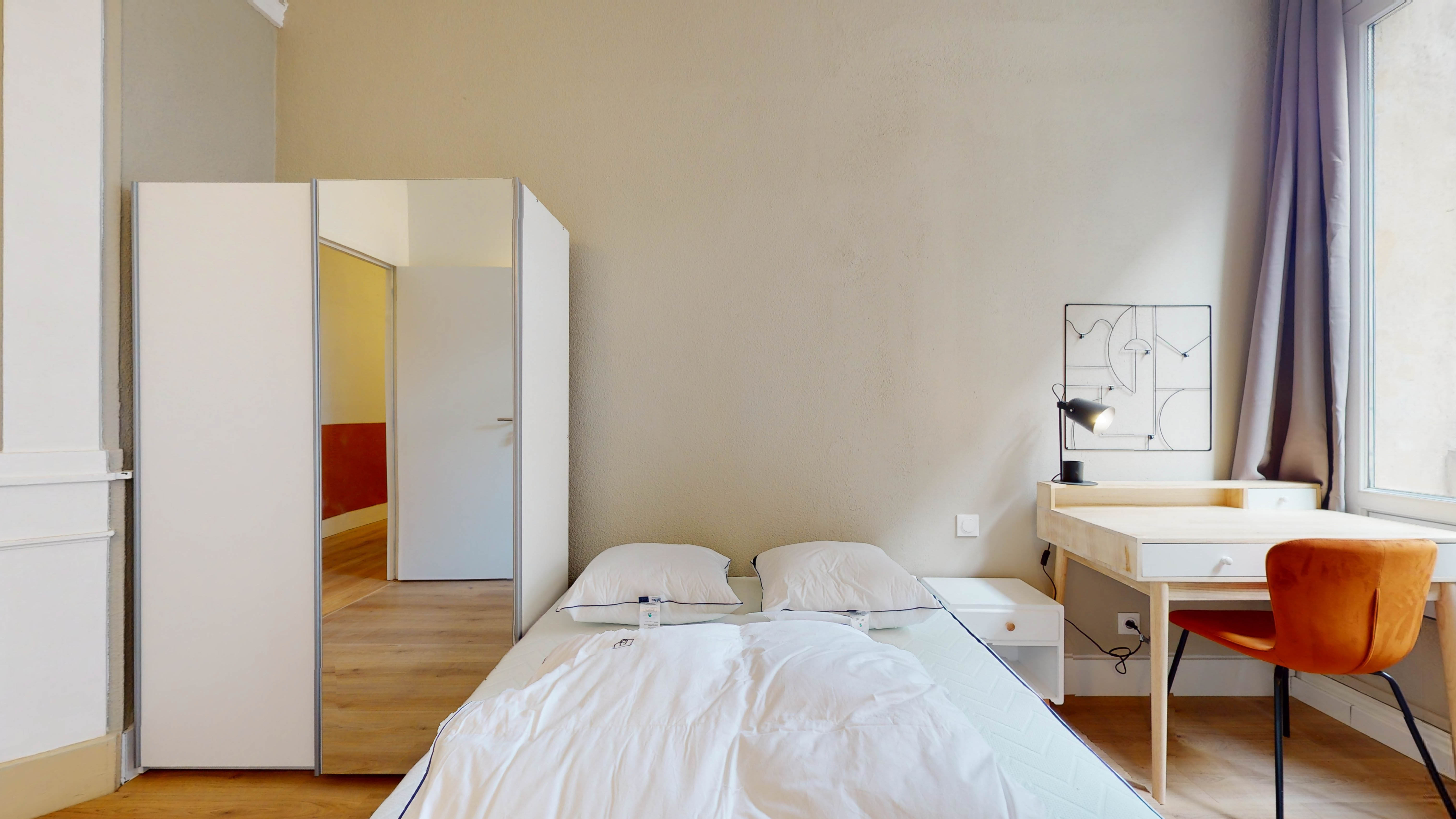 La chambre que nous vous proposons, Room 3, est parfaitement adaptée pour une personne avec son lit double confortable, une armoire pour ranger vos affaires, une chaise et un bureau pour étudier ou travailler. Elle mesure 12 m² et est équipée d'un accès à internet haut débit. La salle de bain est partagée avec d'autres locataires et comprend une douche et un lavabo.
