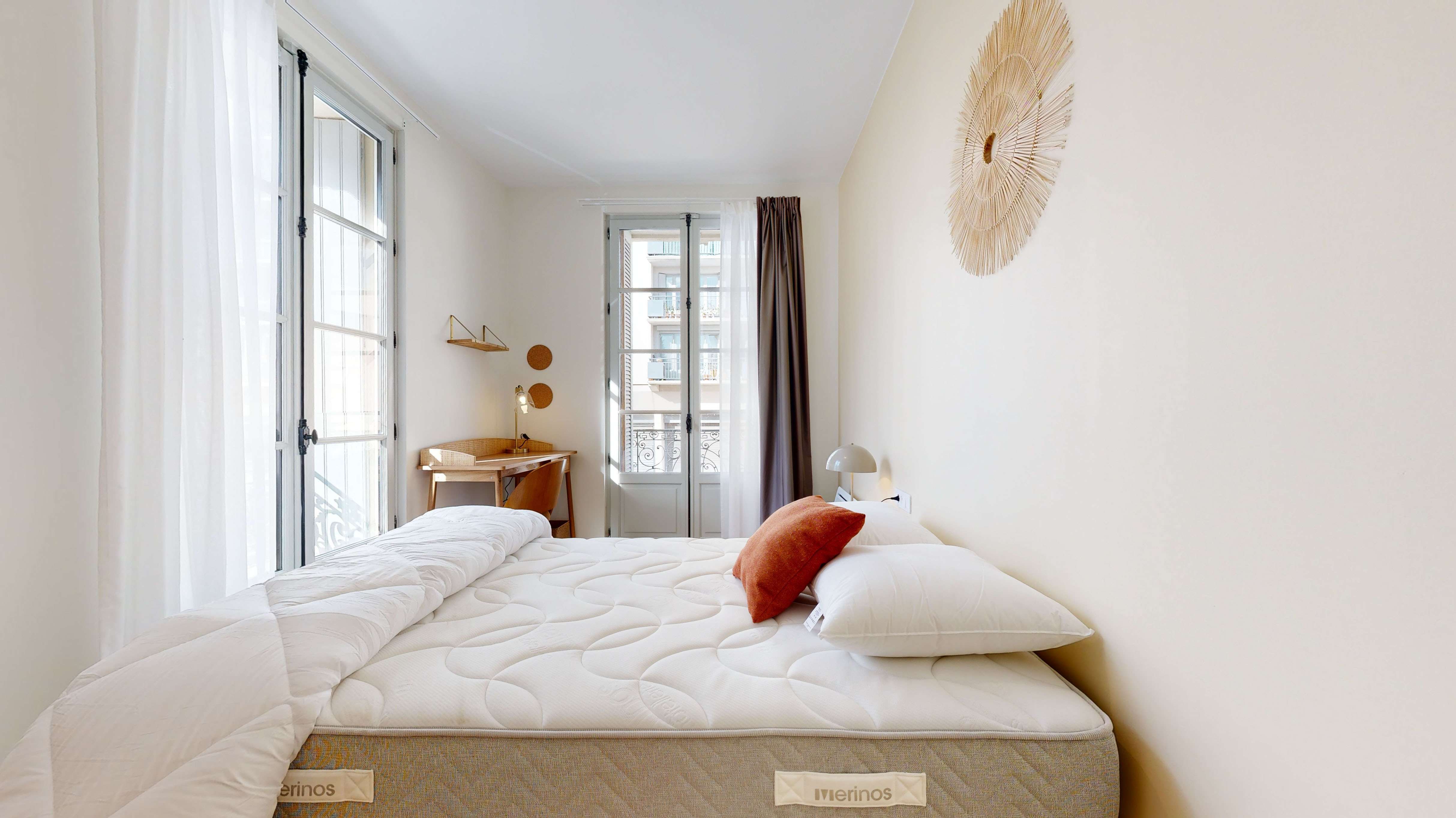 La chambre "Room for one person - 8" est un cocon douillet situé au premier étage. Elle est idéale pour une personne et comprend tout le nécessaire : un confortable lit double, une armoire spacieuse pour vos affaires, un bureau et une chaise pour travailler ou étudier, ainsi qu'un accès à un balcon filant pour prendre l'air. La salle de bain est partagée avec un autre locataire et dispose d'une douche.