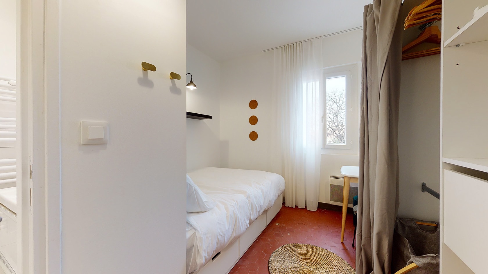 Bienvenue à la résidence Zenith, un espace de coliving chaleureux et convivial. Avec ses 460m2 répartis sur trois niveaux, cette maison offre dix-huit unités privatives et des espaces communs où il fait bon vivre. Vous pourrez profiter d'une salle de projection pour vos soirées cinéma, d'une cuisine moderne ouverte sur la salle à manger pour partager des repas, et d'un espace buanderie équipé pour faciliter votre quotidien. À l'extérieur, un grand jardin de 900m² vous attend pour des moments de détente en plein air. Et si vous avez une voiture, un parking est disponible moyennant un petit supplément.