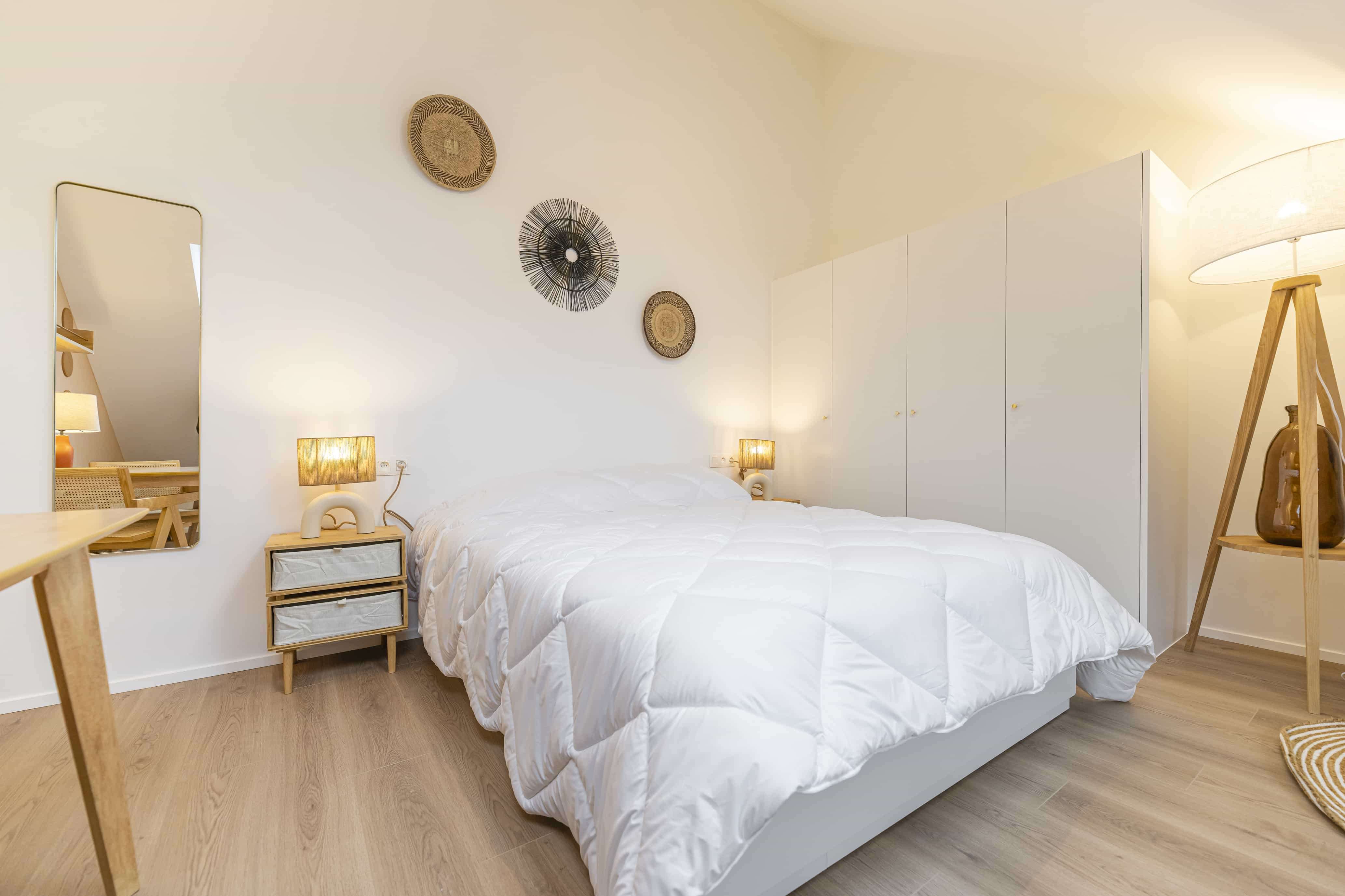 La "Room for one person - 9" est un studio confortable situé au deuxième étage. Il est parfait pour une personne avec son lit double, son armoire pour ranger vos affaires, un bureau et une chaise pour travailler ou étudier. La salle de bain est à partager avec un autre locataire et comprend une douche moderne. Vous bénéficierez également d'une connexion internet haut débit dans votre chambre.