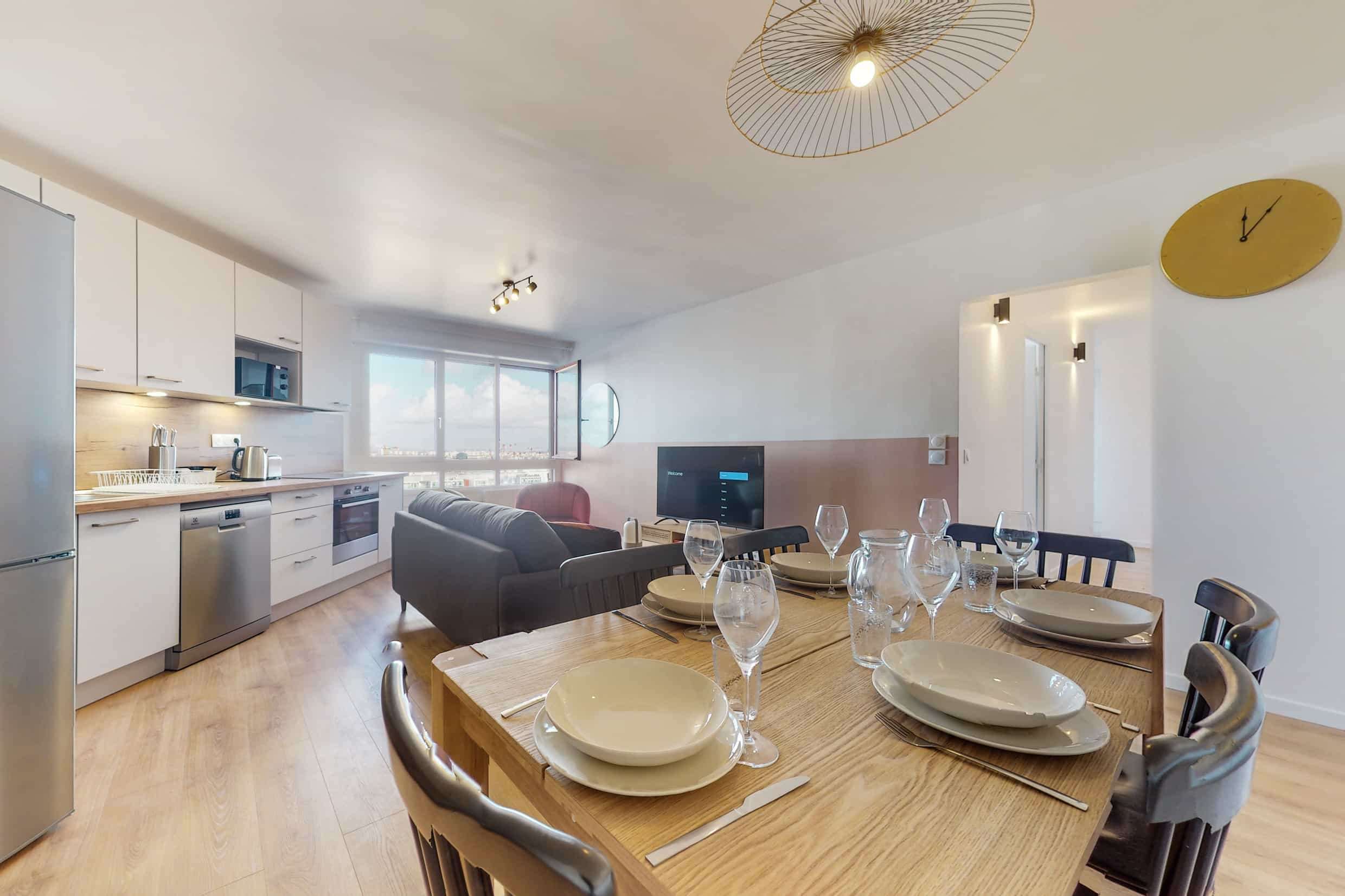 Bienvenue dans notre colocation conviviale située à Nanterre Salvador Allende 2 ! Cet appartement en duplex de 132 m² offre une cuisine équipée ouverte sur un spacieux séjour et une salle à manger, où vous pouvez cuisiner, manger et vous détendre. Avec 6 chambres, 2 salles d'eau et 2 WC séparés, il y a beaucoup d'espace pour tout le monde. De plus, vous pourrez profiter de moments en plein air sur notre grande terrasse !