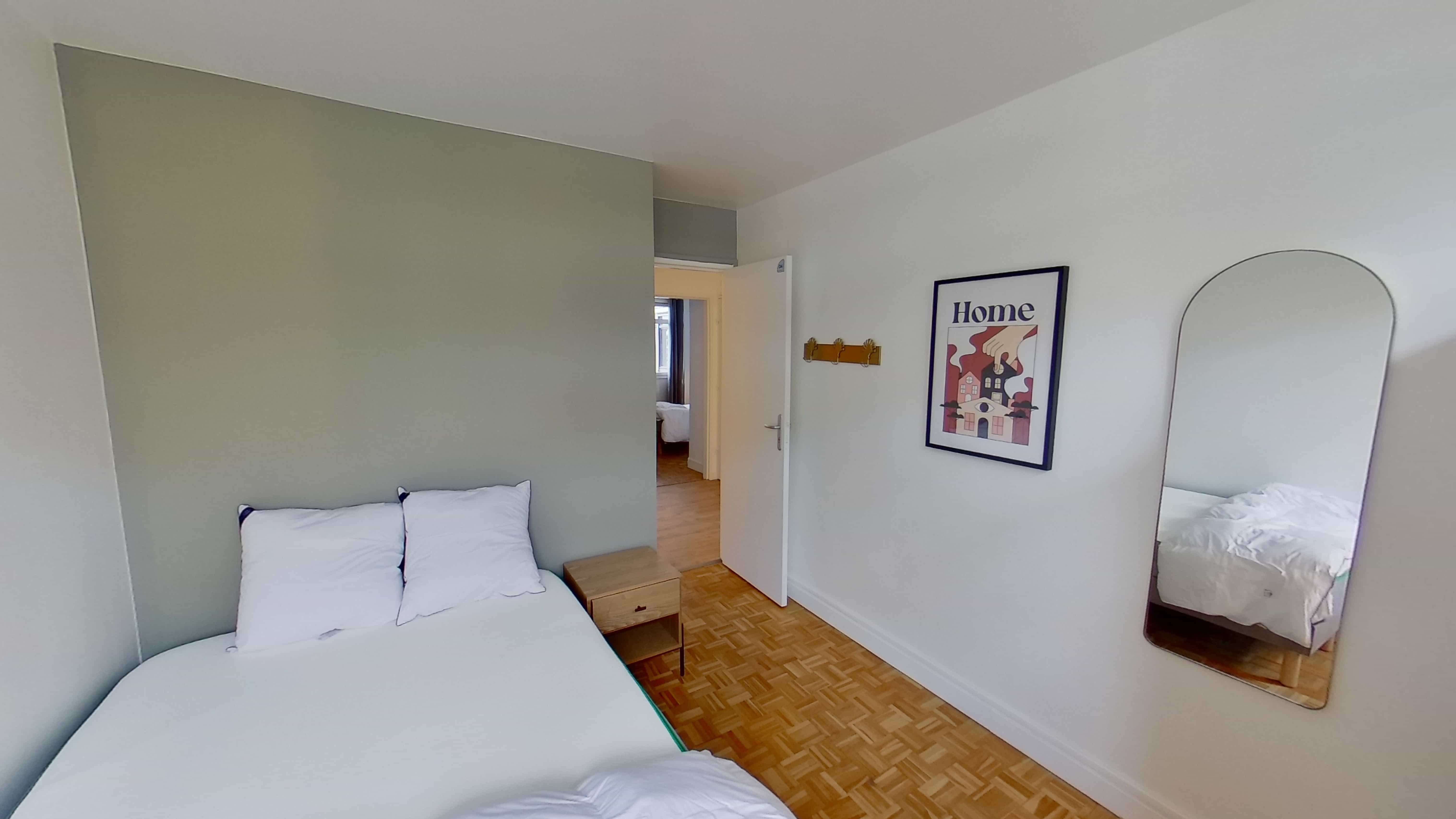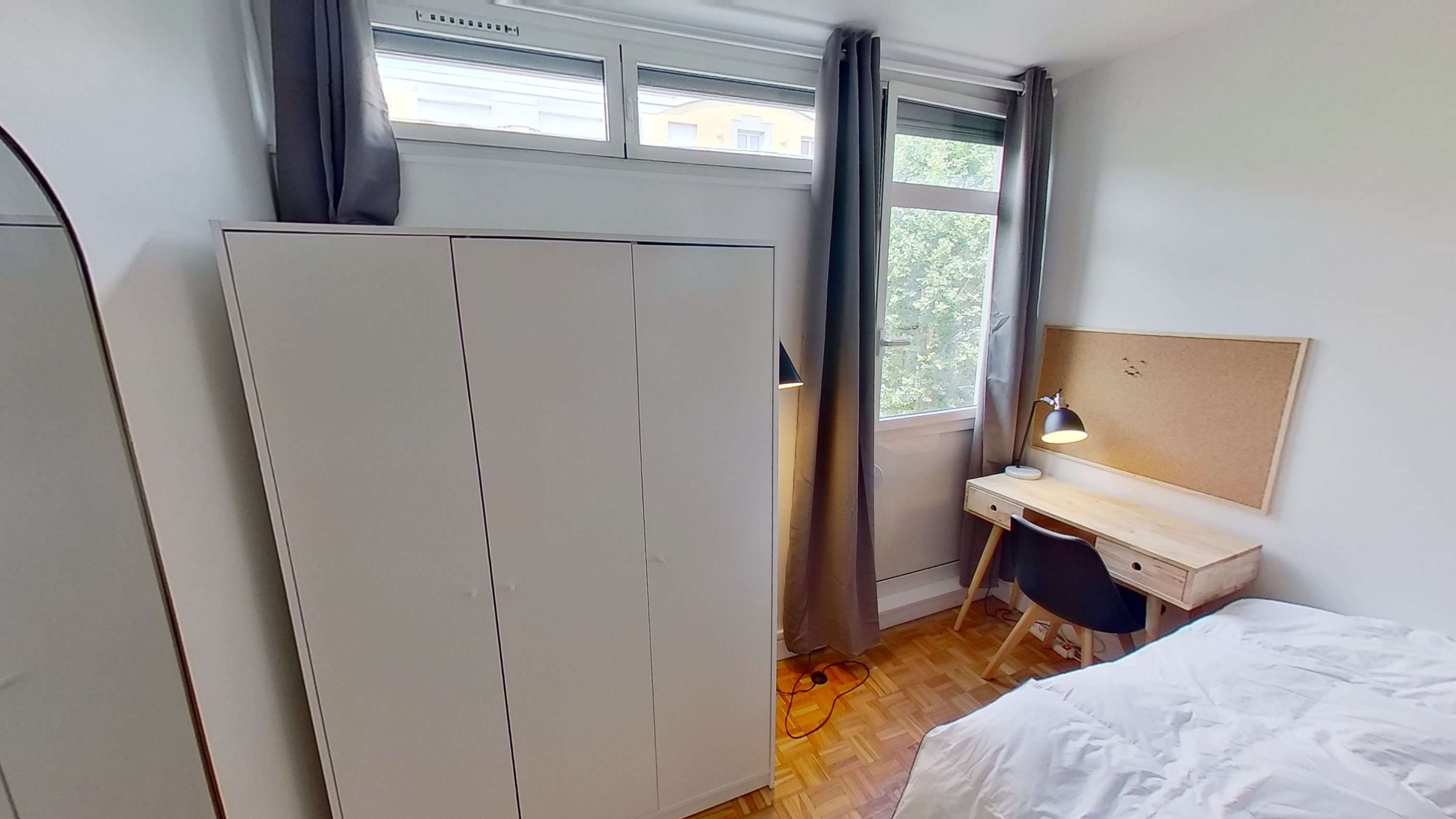 Votre chambre personnelle, Room 4, est un petit cocon douillet de 10 m² juste pour vous. Avec un lit double confortable, une armoire pour vos vêtements, un bureau et une chaise pour travailler ou étudier, et même une salle de bain partagée, vous aurez tout ce dont vous avez besoin pour vous sentir bien dans votre espace privé.