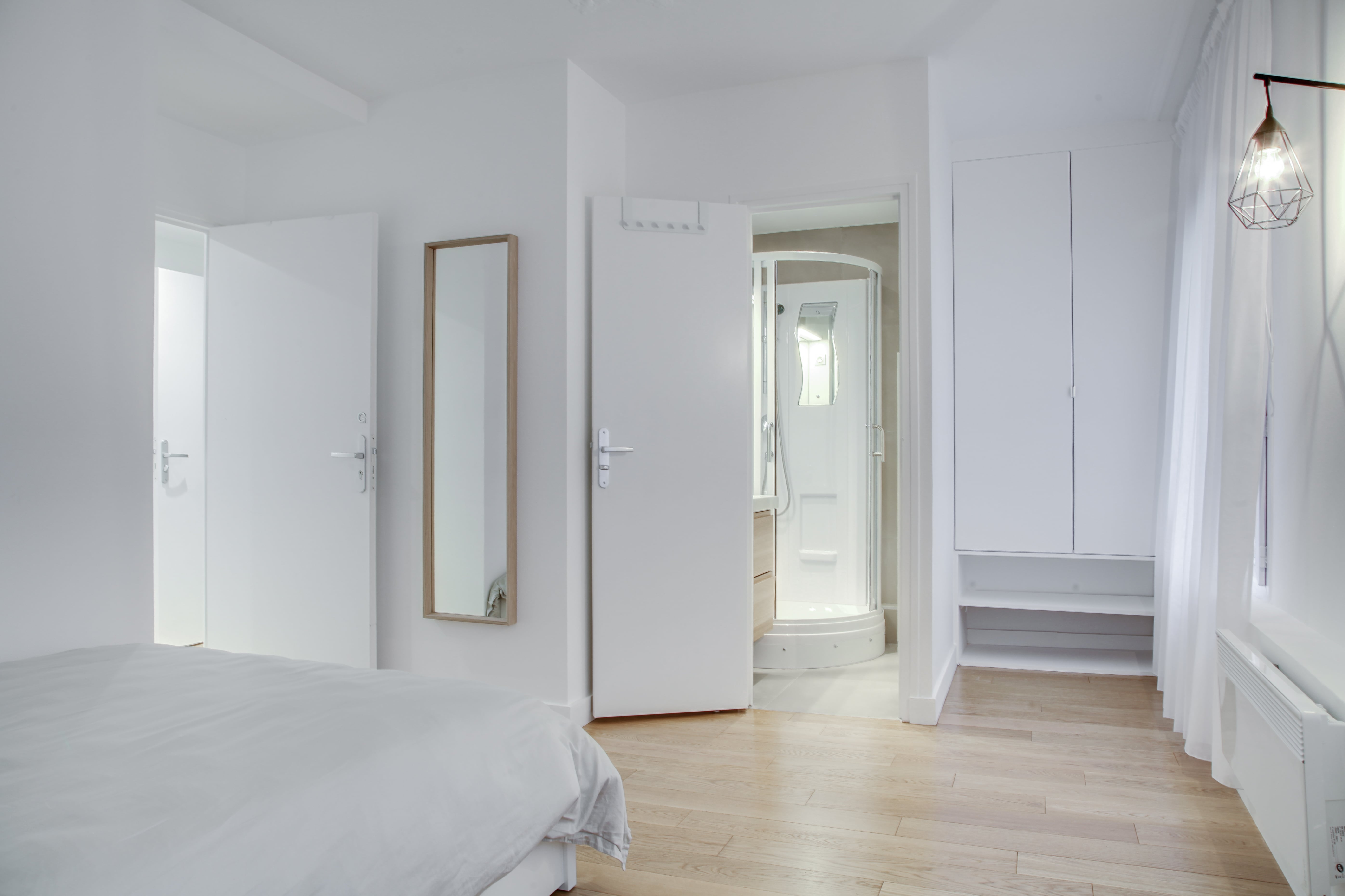 La chambre Room 7 est un petit cocon personnel de 12 m², juste pour vous. Elle est meublée avec un lit double confortable, une armoire pour vos affaires, un bureau et une chaise pour travailler ou étudier. De plus, cette chambre bénéficie d'une salle de bain privée avec douche et toilettes, ce qui vous assure intimité et confort.