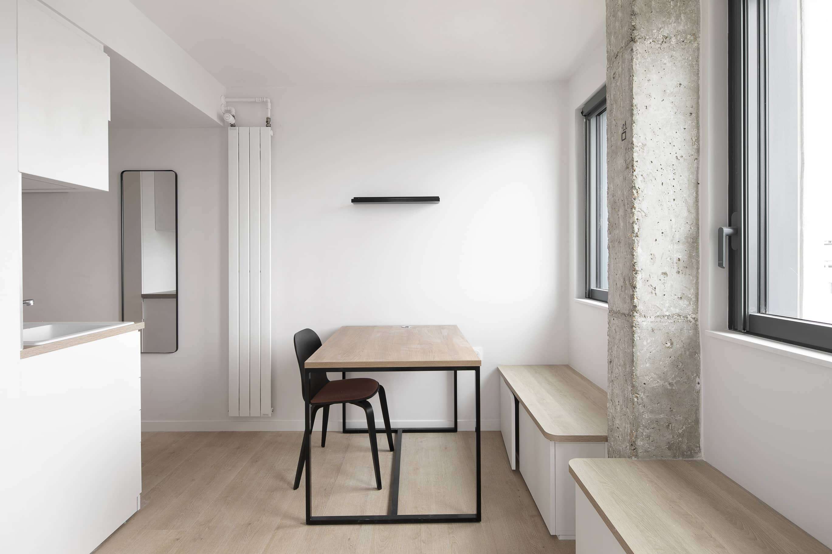 La chambre One-bedroom Flat (T2) - 806, située au huitième étage, est un petit havre de paix. Cette unité privative pour deux personnes dispose d'une salle de bain séparée avec douche et lavabo, ainsi que d'une kitchenette pratique. Le confort n'est pas en reste avec un lit double douillet, une armoire spacieuse, un bureau et une chaise pour vos moments de travail ou de détente.