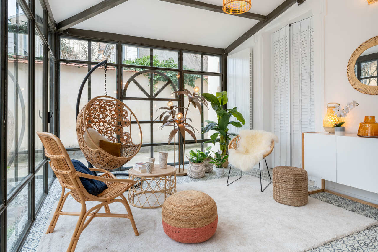 La véranda/verrière offre un cadre exceptionnel pour chiller avec ses colocs. La déco est superbe, l’espace cosy. Un