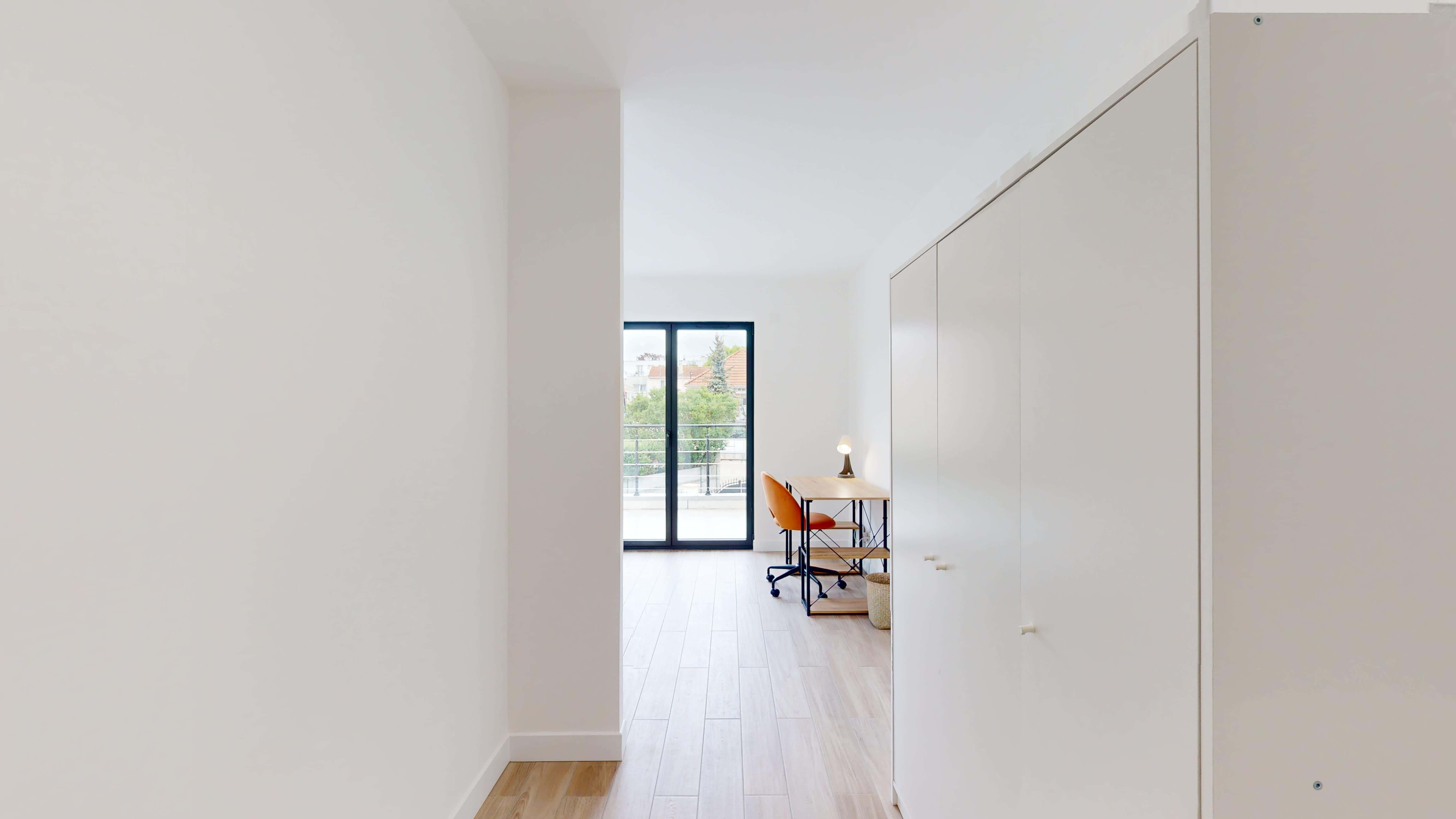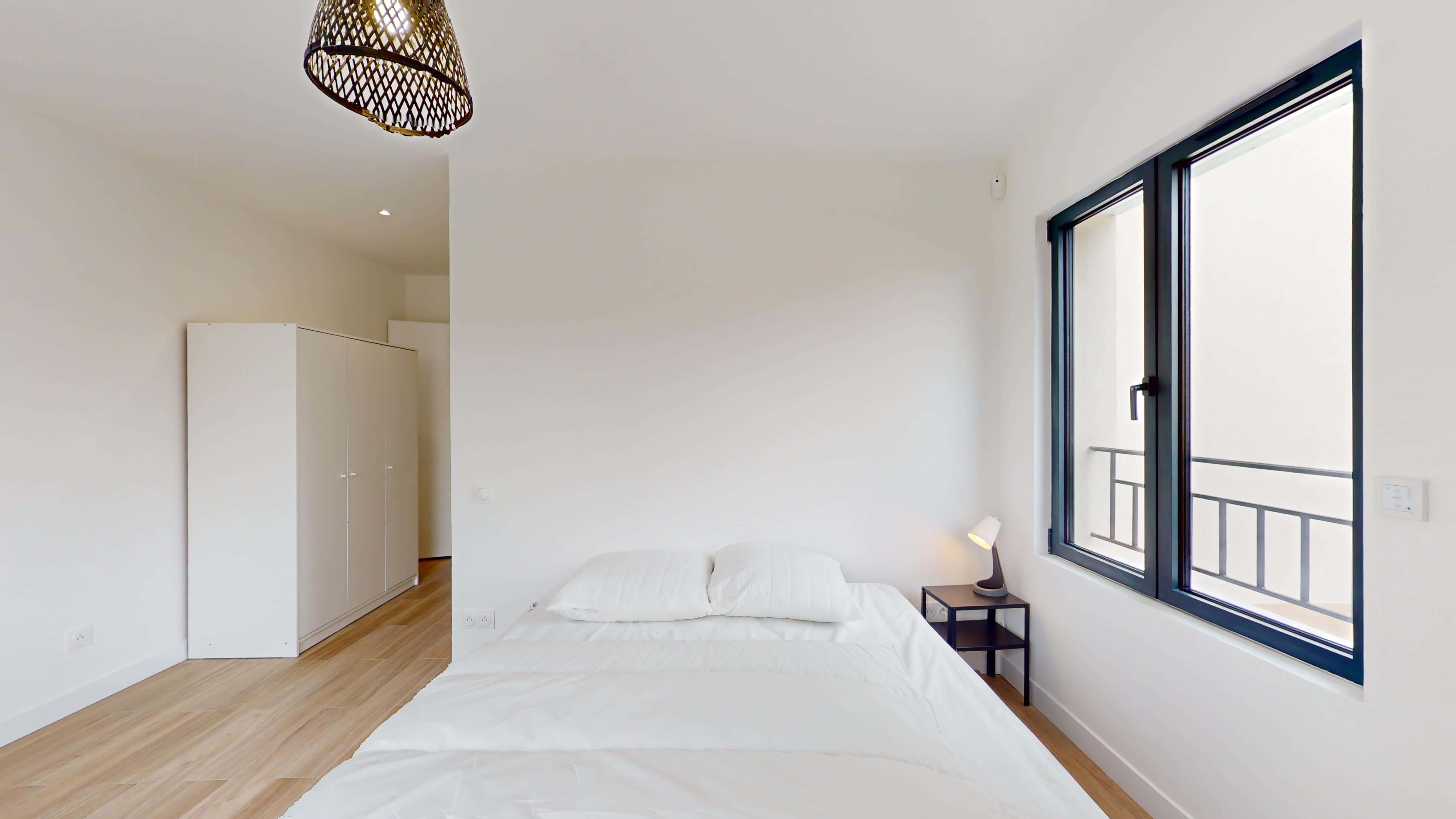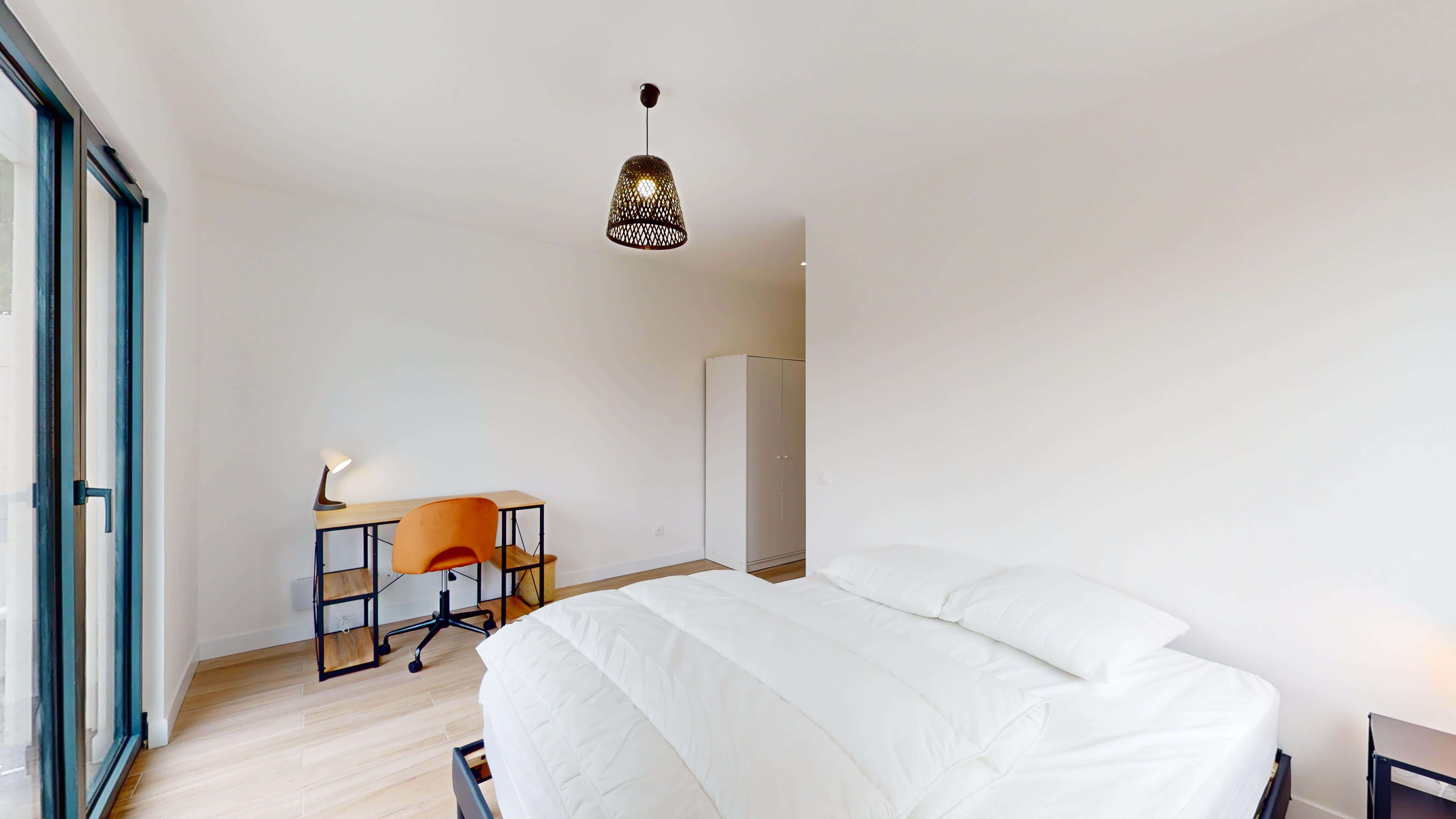 La chambre, nommée Room 2, est parfaite pour une personne. Elle dispose d'un confortable lit double, d'une armoire spacieuse pour vos affaires, et d'un bureau pour travailler ou étudier en toute tranquillité. La salle de bain est partagée avec d'autres locataires et comprend une douche, un lavabo et des toilettes.