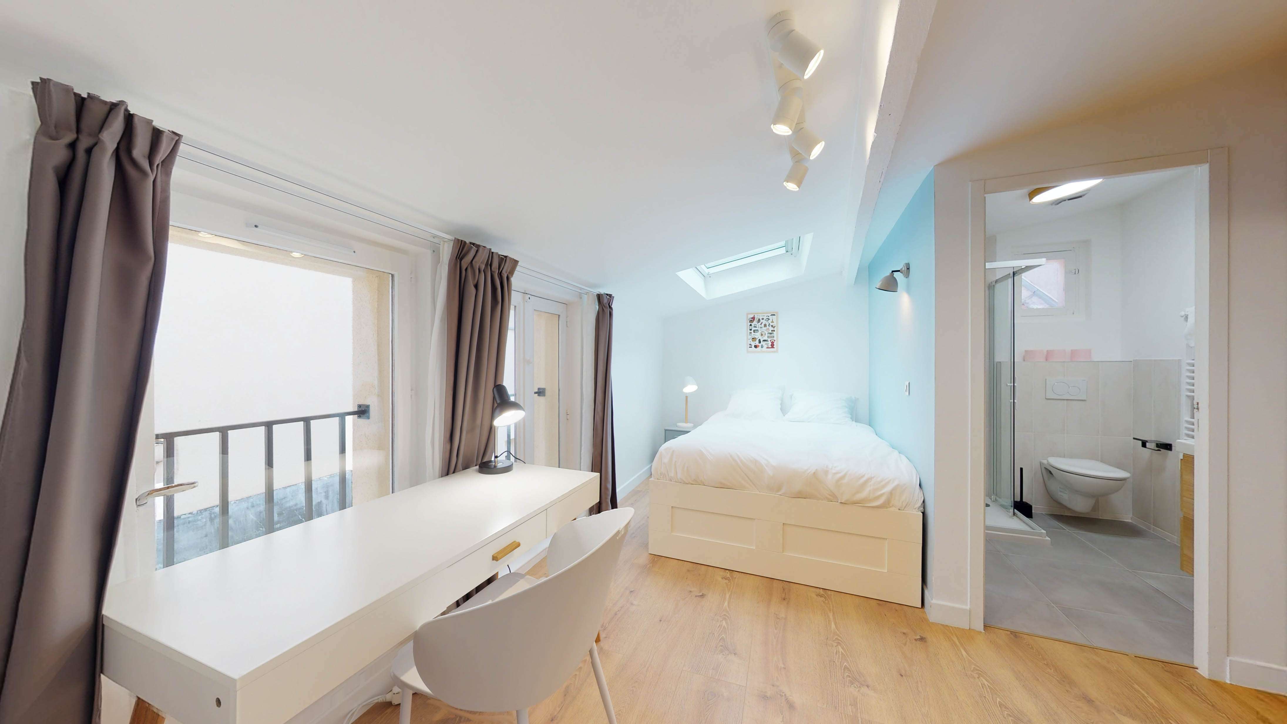 Bienvenue à la résidence Broc, un espace de coliving chaleureux et convivial qui s'étend sur 260m². La maison se compose de neuf unités privées réparties sur deux étages, accessibles par des escaliers. Les espaces communs sont le cœur de la vie en coliving : une cuisine ouverte où vous pourrez préparer vos repas, un salon pour se détendre et échanger avec les autres résidents, un patio pour profiter des beaux jours et une buanderie équipée d'une machine à laver et d'un sèche-linge pour votre linge.