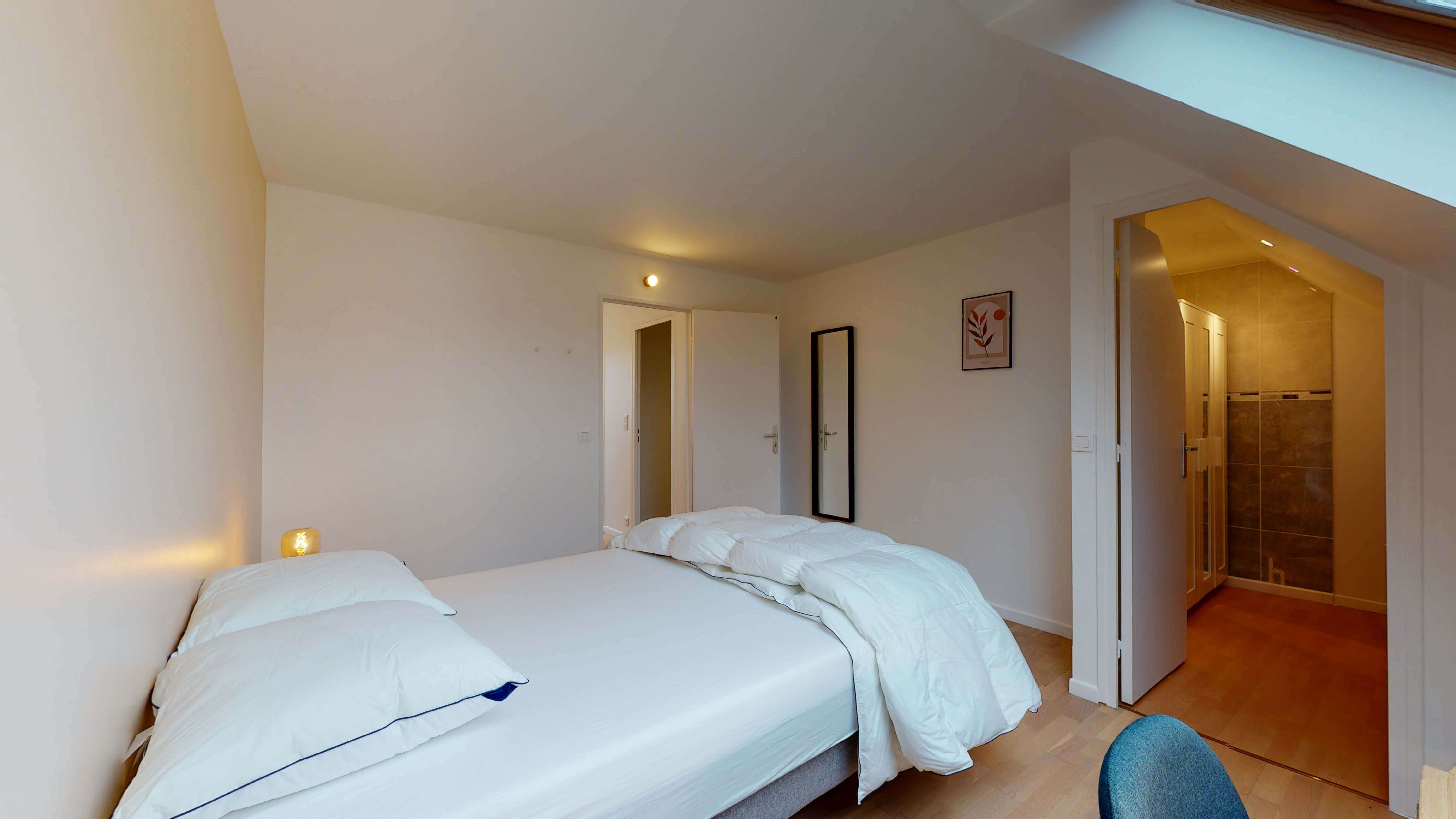 Room 4 est conçue spécialement pour vous offrir confort et intimité. La chambre, de 12 m², est équipée d'un lit double confortable, d'une armoire pour vos vêtements, d'un bureau et d'une chaise pour étudier ou travailler au calme. Elle inclut aussi d'autres petits plus comme une lampe de bureau, un radiateur pour rester au chaud et un chevet pour vos livres de chevet.