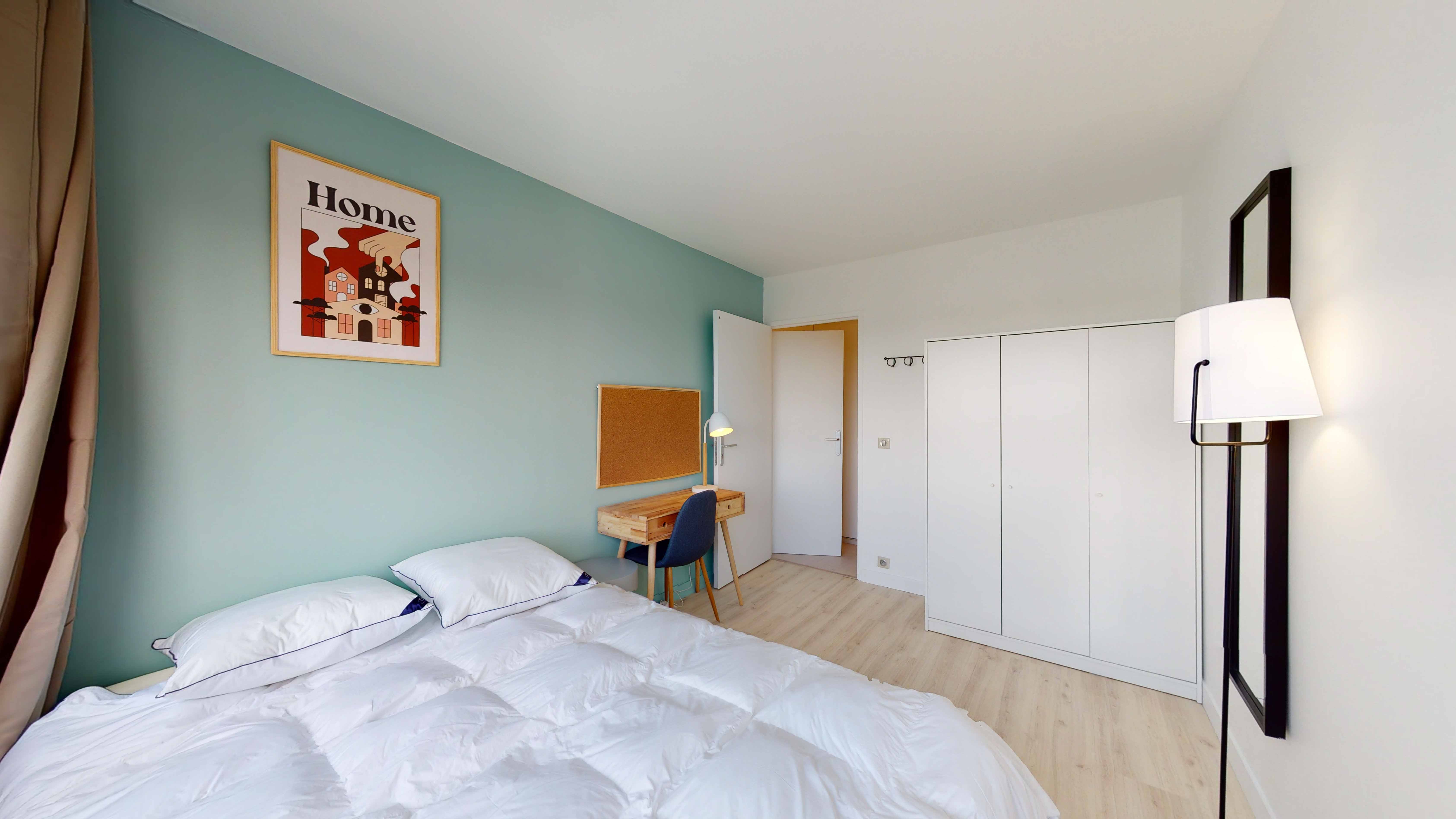 La chambre proposée, Room 4, est un cocon douillet de 10 m² prévu pour une personne. Vous y trouverez un lit double confortable avec de la literie de qualité, une armoire pour ranger vos affaires, ainsi qu'un bureau et une chaise pour étudier ou travailler en toute tranquillité. Cette chambre partage une salle de bain propre et fonctionnelle avec d'autres locataires.